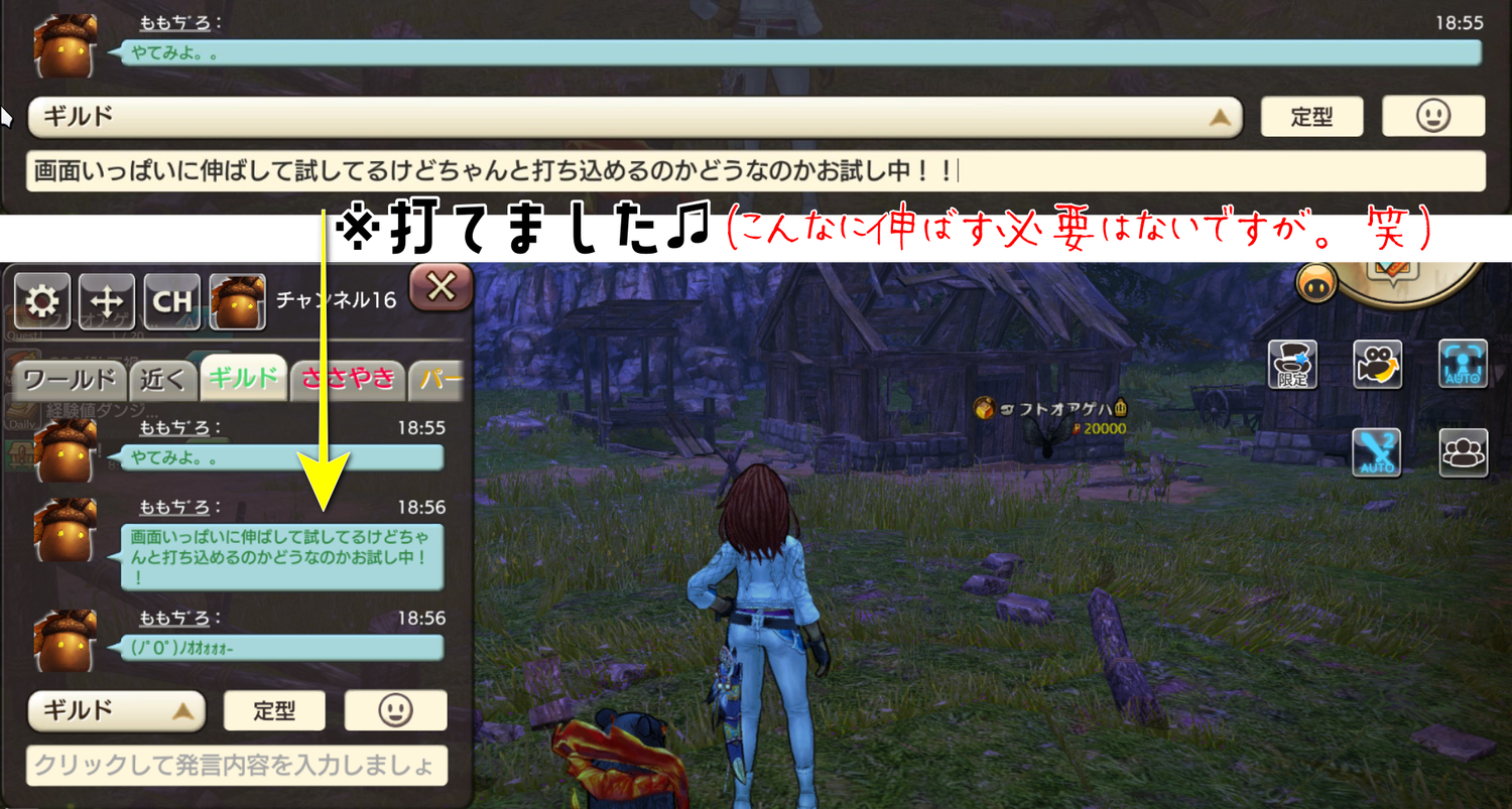 チャット画面を横幅広くすると、一応最後まで文章は打ち込めましたよ!