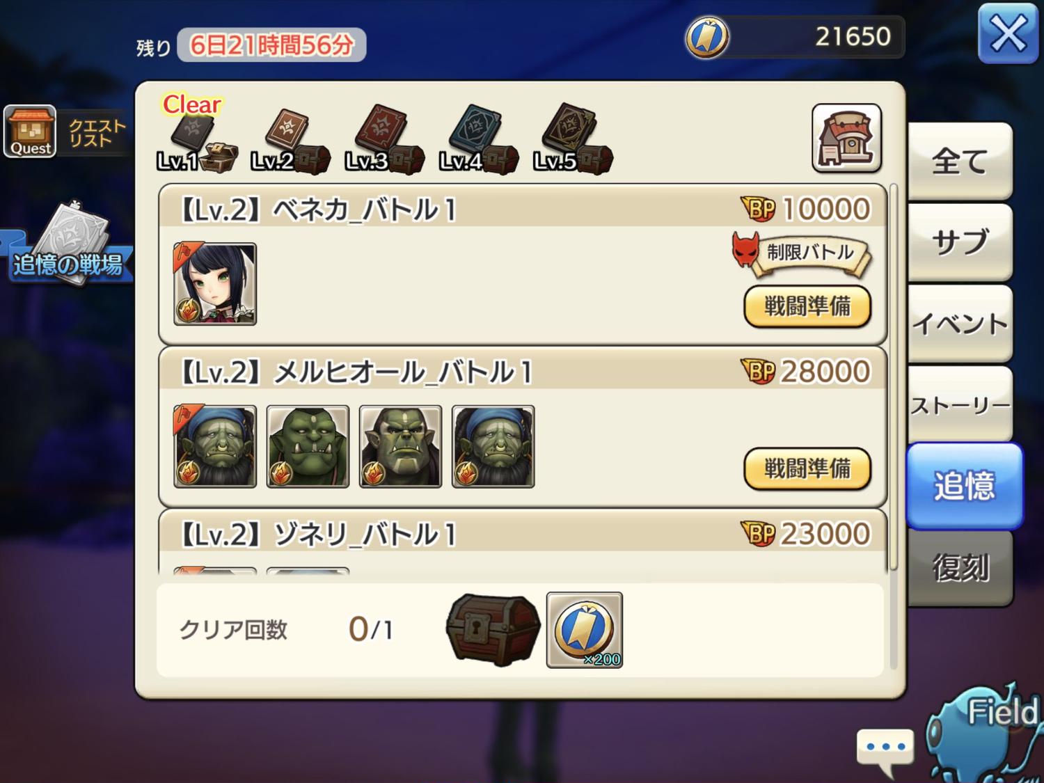 イアル夜時間に追憶を開始すると夜景、昼時間だと明るい草原でベネカさん戦を楽しめます。