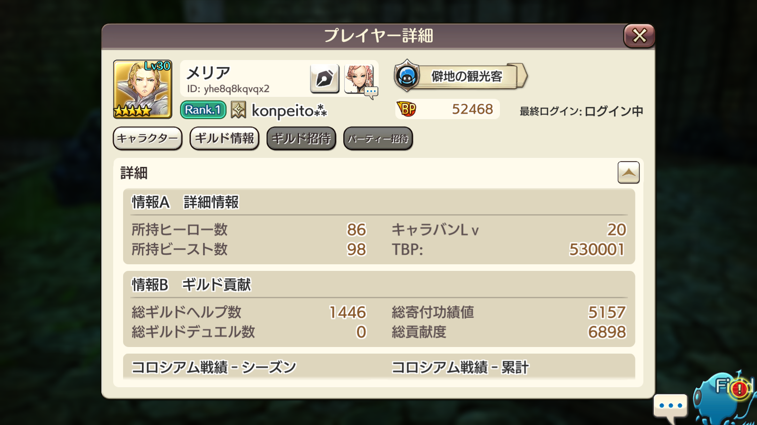 2018/06/24 19:54 公開 私の戦闘力は530000です。 雑日誌 こんばんは。私の戦闘力は530000です。メリアです。ですがもちろんキャラクターの総BPなのでご安心を…(´・ω・`)ふとキャラクター情報の総BPを見たときからこの日誌を書きたかったのです…(*´ω`*)(厳密には530001ですが…)とりあえず目標達成、これからも頑張りますよ٩( 'ω' )و メリア リンクをコピーしました 前の旅日誌 旅日誌一覧 次の旅日誌 コメント 1 カーミュラ ID: aqzsg29kgeu6 凄いですね♪私は、未だに35万?くらいだった気がしますw強くなりたいなぁと思いながら全然強くなれない現実orzそれなりに努力してるつもりなのですが、頑張りが足りないのかな?? 2018/06/25 17:37 2 メリア ID: yhe8q8kqvqx2 >> 1 ありがとうございます(*'ω'*)単に私は☆4に進化させてるキャラが多いだけだと思います(´・ω・`)当然ルーンなんかは付いてませんから実際バトルになった時に役立つ子が何人居るのかなぁ… 2018/06/25 19:29