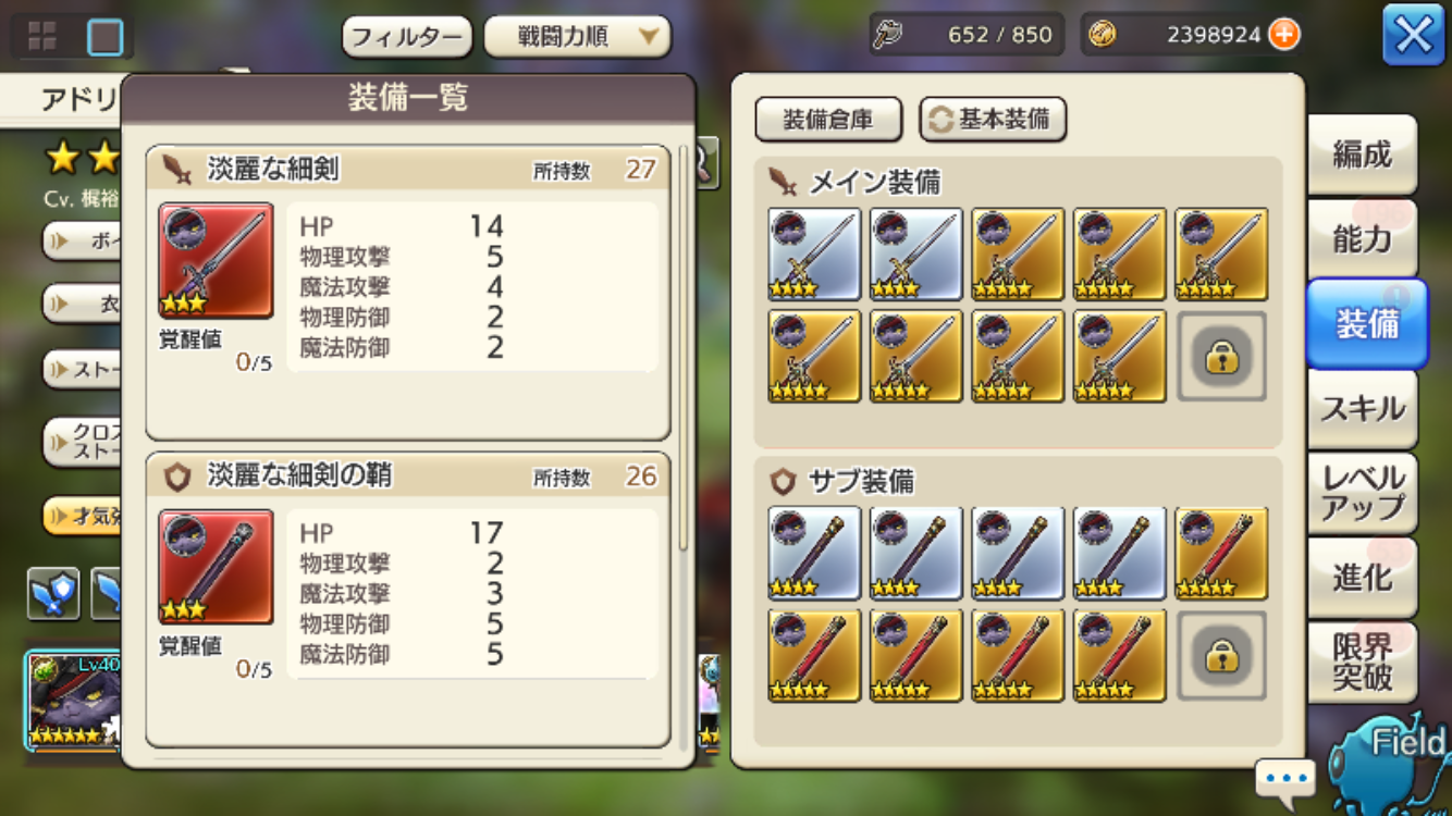 補助装備厳しいですね(/ω\)他のキャラの育成遅延にも繋がるのがw