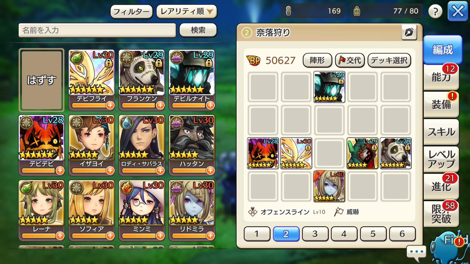 というわけで、ヒーローと素材が被らない進化とレベル上げを行って、「レベルとレアリティを上げて能力値で殴れ」を実行しました。