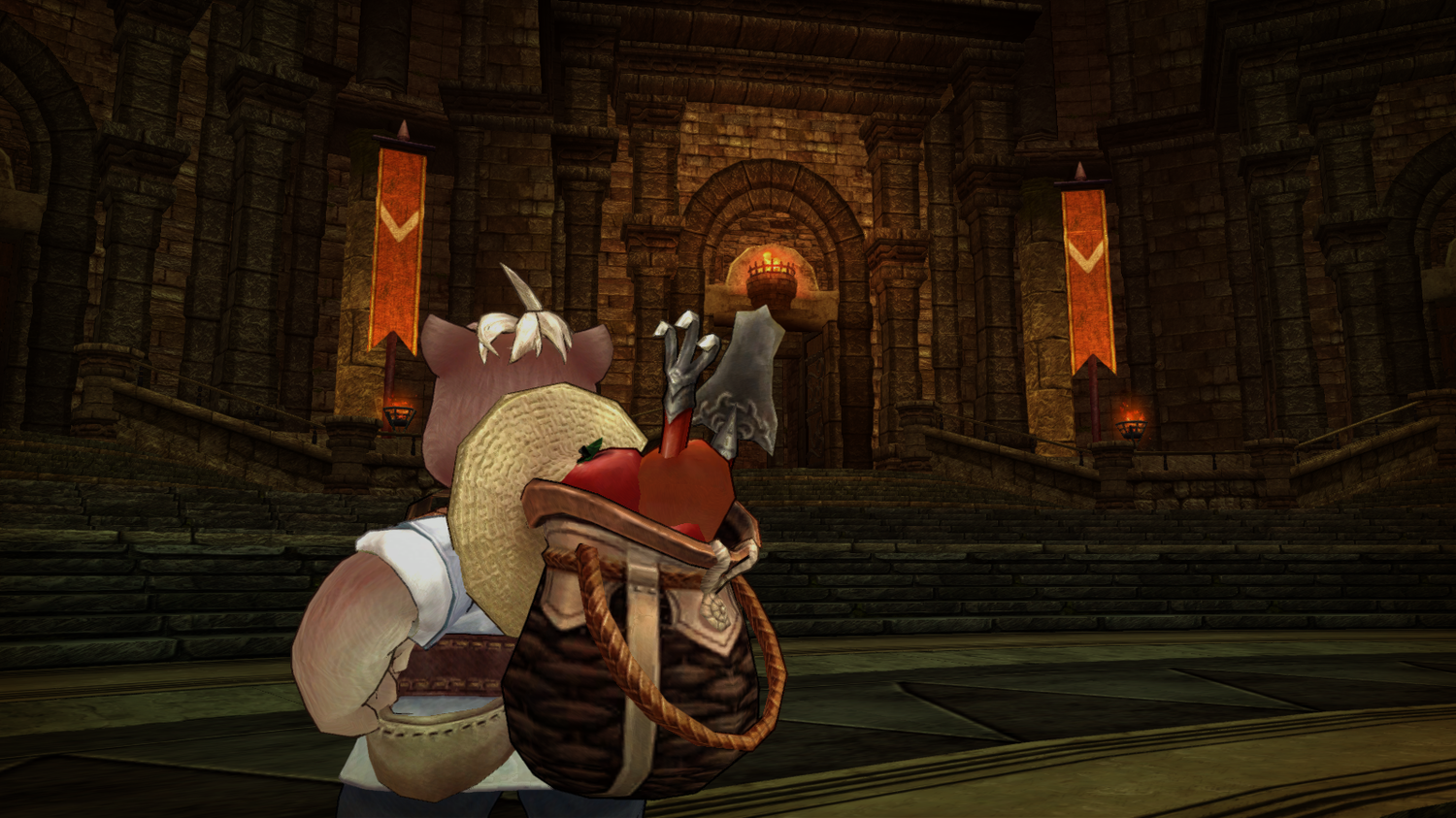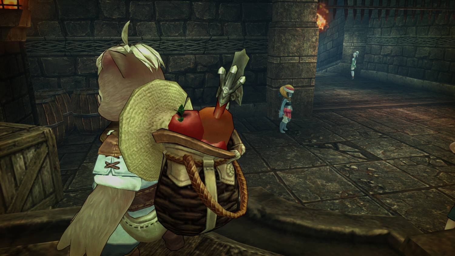 予想としては武器はポムムの横というか手前というか、ズレてかごに入れてあるのではと思うのですが。どうなんだろう。実はポムムに刺さっているのがデフォルト…? 普通に考えたら、なんでそこに刺すの?ってなりますよね多分。