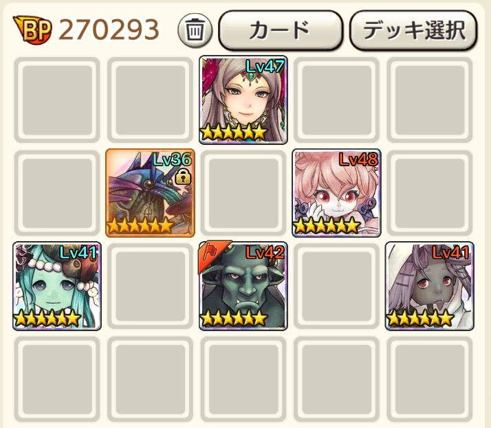 これで勝率8割くらいのギリギリ編成。たまにサソリが結晶化したまま殴ってきて死ぬ