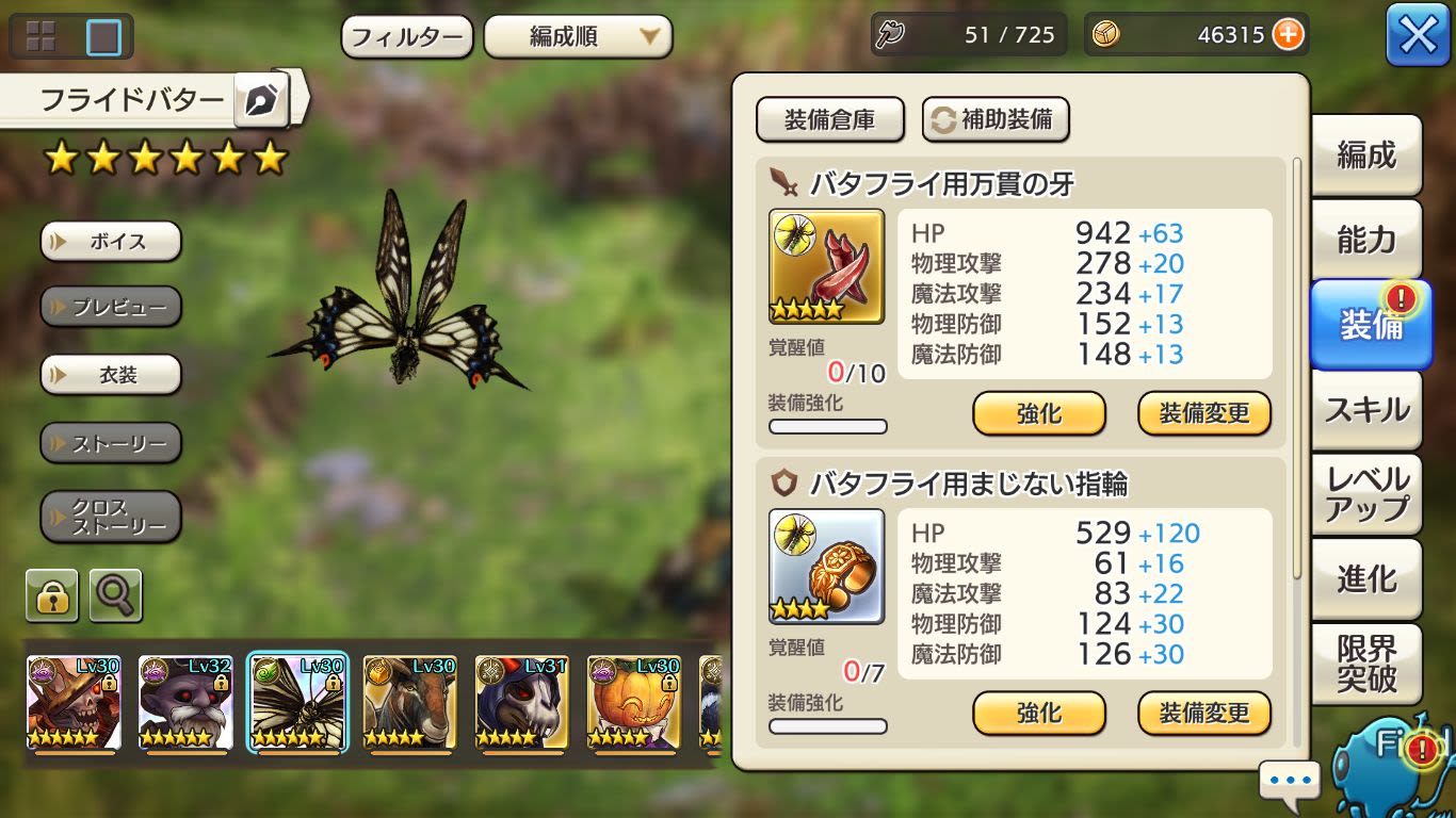 ボーンファイター、ドワーフゾンビ、バタフライの3体を星6進化しました。
