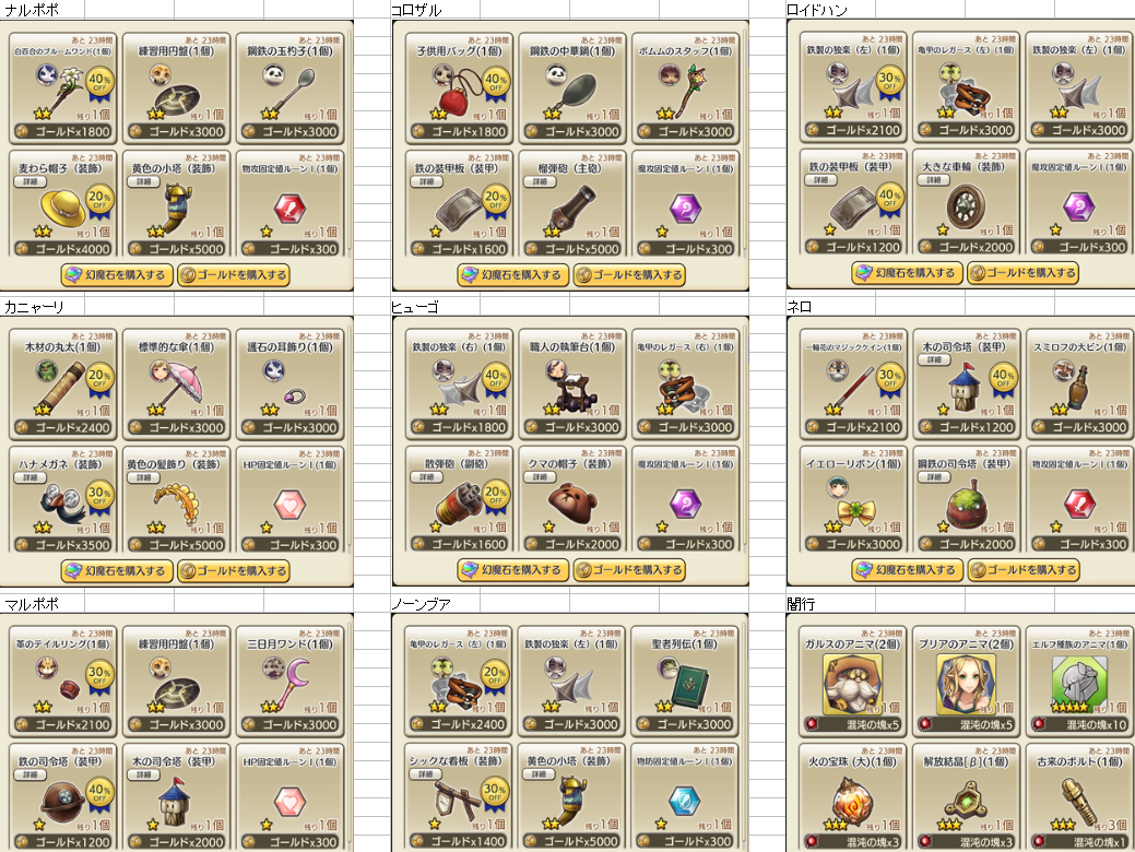 6/12 装備商人一覧