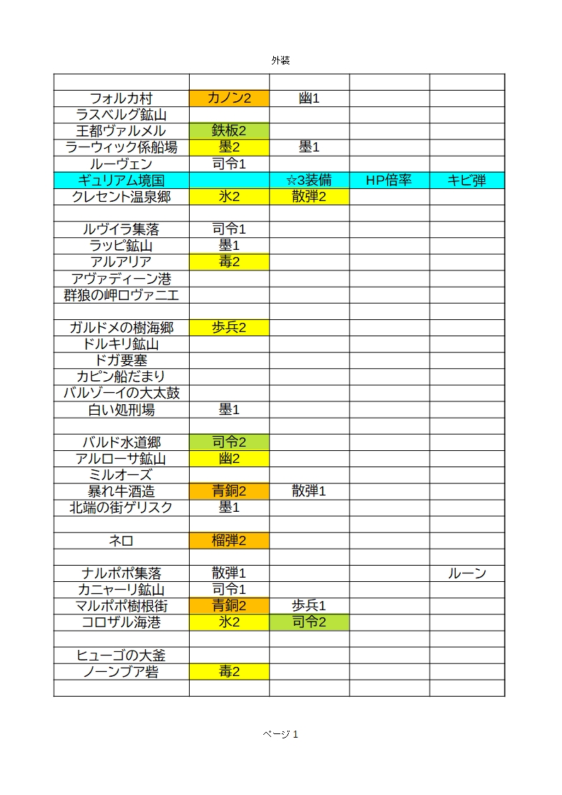 2020/08/30 05:00 公開 きょうの毒砲 雑日誌 2020/8/30日曜日 本日はギュリアム境国に3つの商品が並ぶ珍しいケースのため特別に着色してあります ルーンはナルポポ集落 スクリーンショットは闇の行商のラインナップです ※表の数字はレアリティです数量ではありません※司令塔は全種類区別なく「司令」と表記※装飾品は表記してありません アン リンクをコピーしました 前の旅日誌 旅日誌一覧 次の旅日誌 コメント