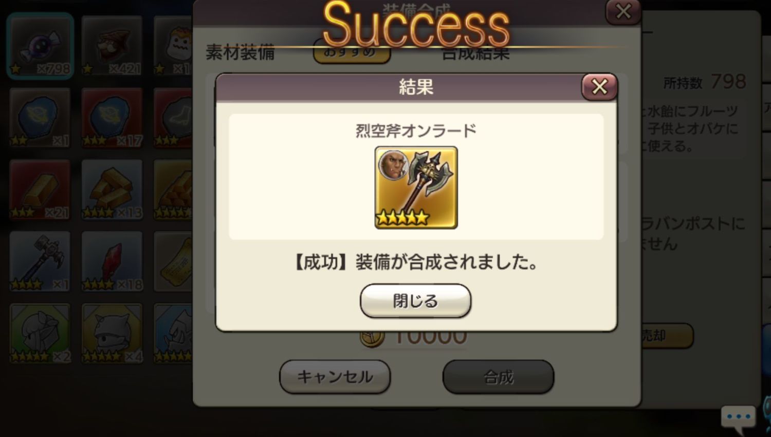2018/11/21 01:37 公開 合成で☆5ができただと!! 雑日誌 スクリーンショット 冒険者手帳で☆4にするためにボグスのアニマがたまったので進化させて持っている武器が両方☆3だったので☆4の武器を与えようとしたら☆5両方できてしまっただと!!なおもう1回マルバス指定で☆5チャレンジをやったところ☆4でした。☆5は当分足りませんがレオクエ目標で耐性を上げてダメージ減を積むところからかな?(☆4耐久で足りるかは知りません) 氷十郎 リンクをコピーしました 前の旅日誌 旅日誌一覧 次の旅日誌 コメント