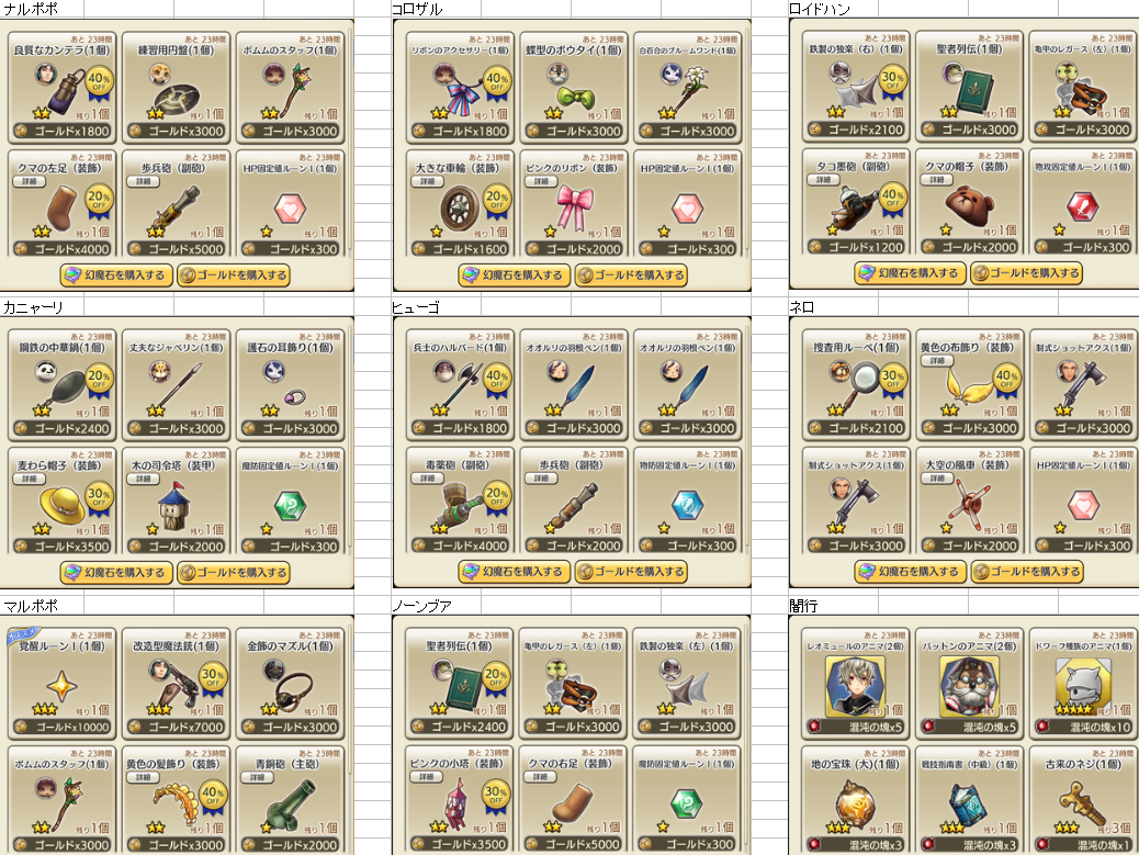 8/11 装備商人一覧