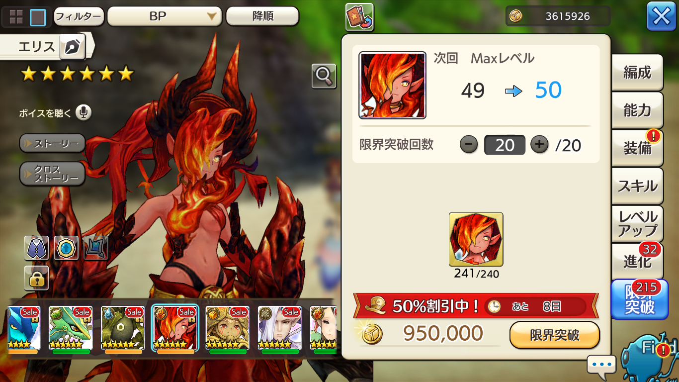 この週末には、今まで狂ったように狩っていたサラマンドラさんが念願のLv50限界突破を果たしました。