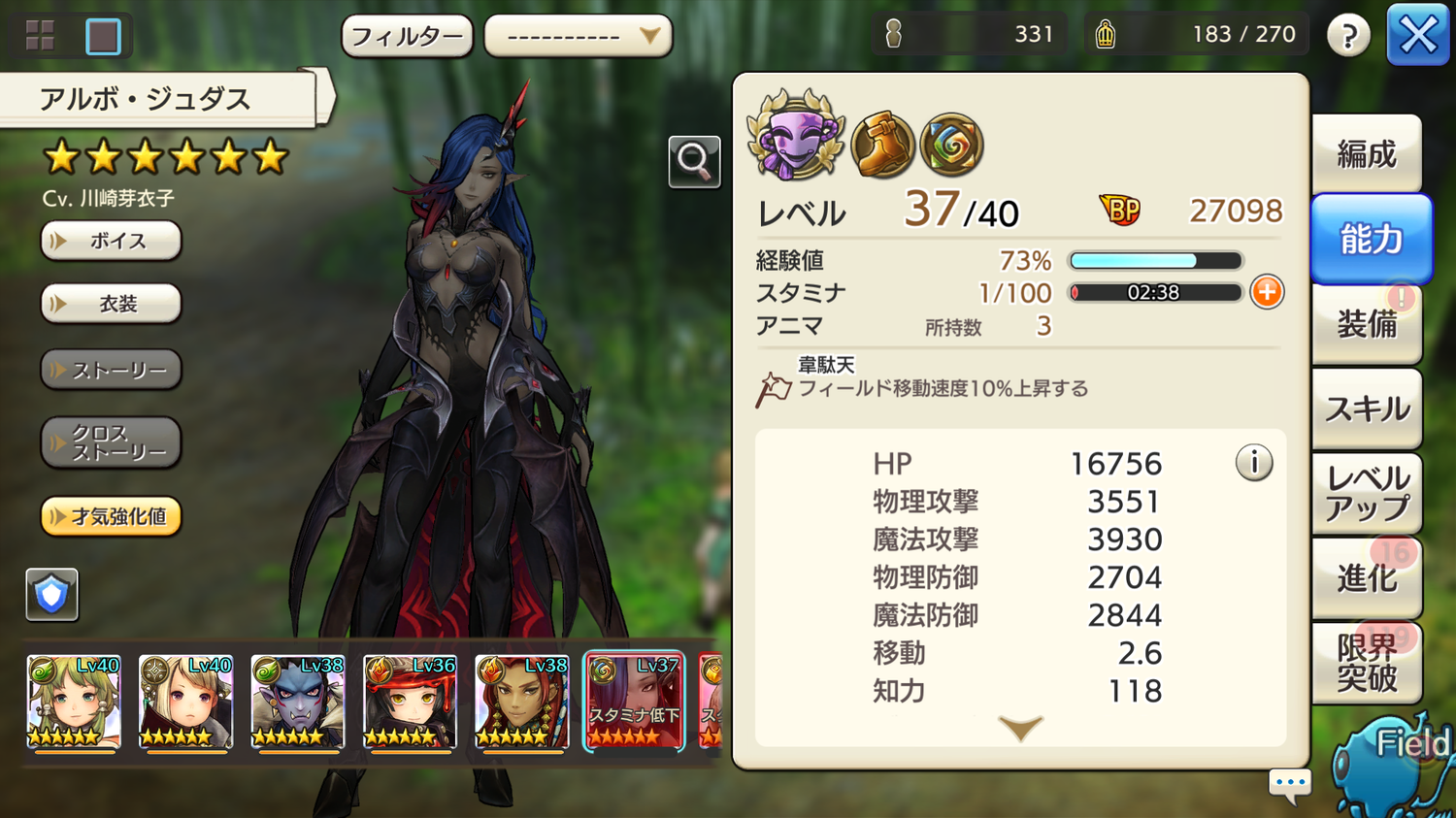 魔法攻撃が高いのは補助装備の差が多きかったが星6装備で差が広がったね。