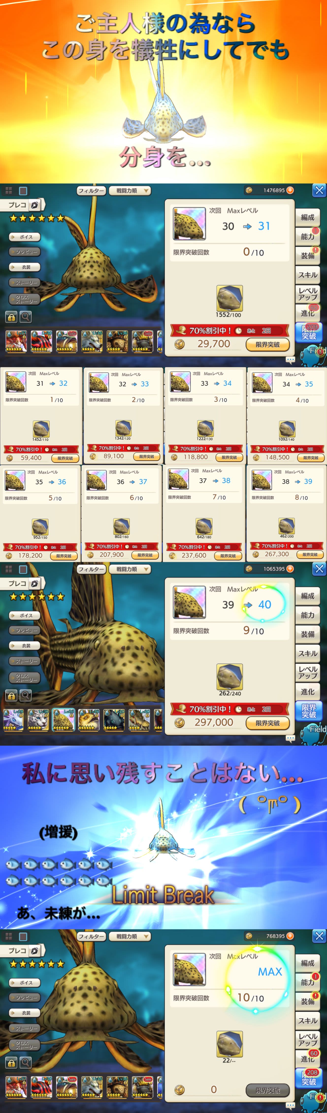 Lv39 / 90万 → 27万 / 200枚 → 90万 → 45万 → 27万