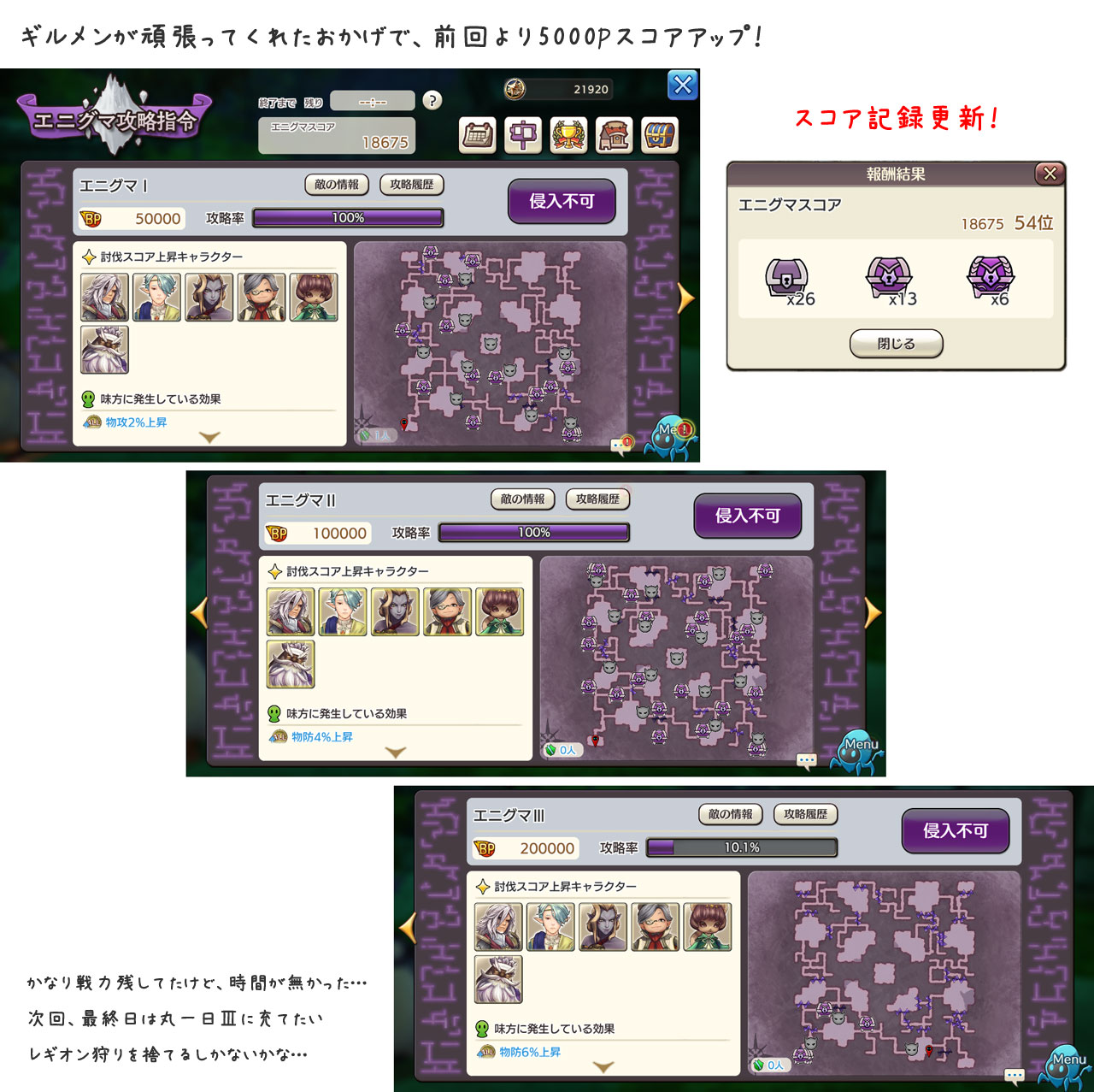 時間的に厳しいので、攻略率に関係ないレギオン狩りを捨てるしかないかな…