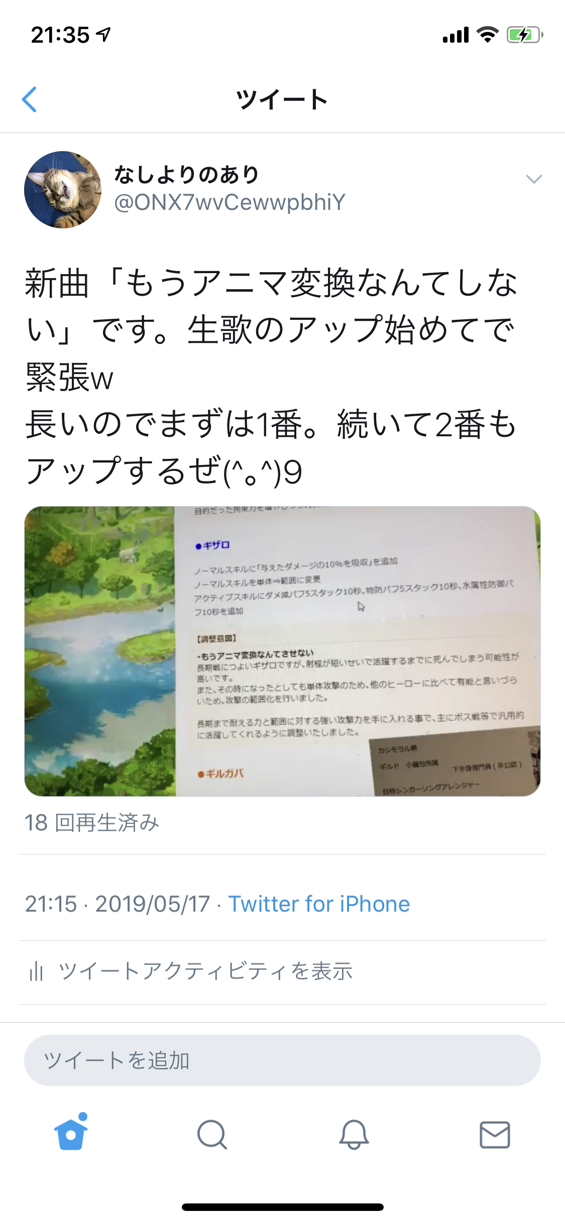 今回はなんとツイッターに動画(静止画ですがw)もアップ。