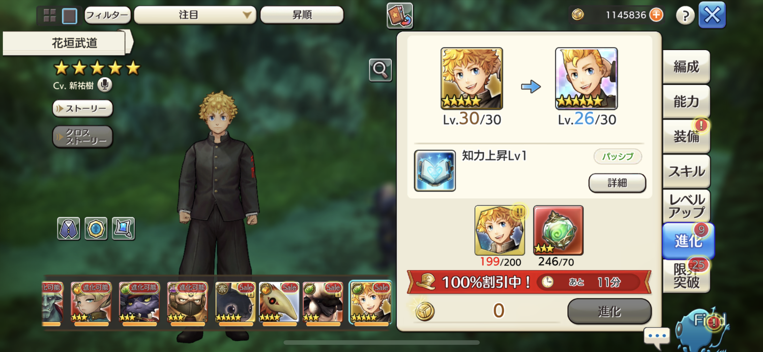 2023/09/26 09:57 公開 間に合わなか、った 雑日誌 初心者 キャラバン 花垣武道のアニマが、、、コラボ期間中に200個貯まって100off期間中に進化するのがベストだったけど本当にあと1個足りなかった。(ᐡ ′̥̥̥ ˙̫ ‵̥̥̥ ᐡ)100off期間が終わってもゴールドだけ取られると思うからまだマシな方なのかな。 OdnG リンクをコピーしました 前の旅日誌 旅日誌一覧 次の旅日誌 コメント 1 トヒロア ID: 3utmcwiux794 そういうときはヒューマンの種族アニマを追加して(能力タブにもアニマの数が書かれててその横の+ボタンから)、それで200にする手もあります。その種族アニマも足りなかったのかな。。。 2023/09/26 10:45 2 OdnG ID: jkmaewvyy32t >> 1 トヒロアさん、コメントありがとうございます。実はヒューマン種族アニマで増やそうと思ったのですが、ヒューマン種族アニマも不足してました。(._.`) 2023/09/26 13:37 3 トヒロア ID: 3utmcwiux794 >> 2 それは・・・カツカツだったんですね(TT; 2023/09/26 16:53