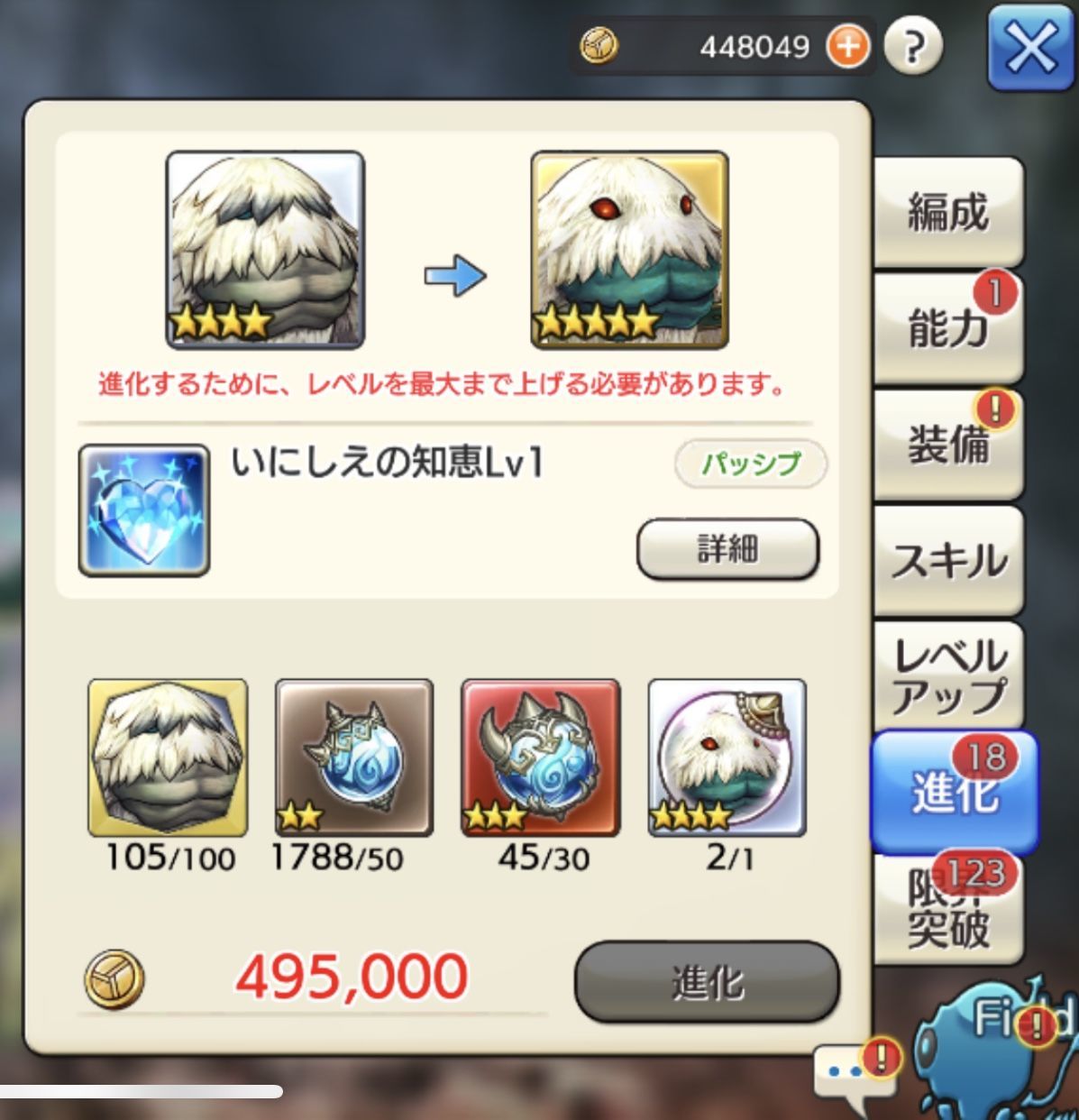 ( ゚д゚)ハッ!そして★5進化素材が2つあるのに今気づいたずら!