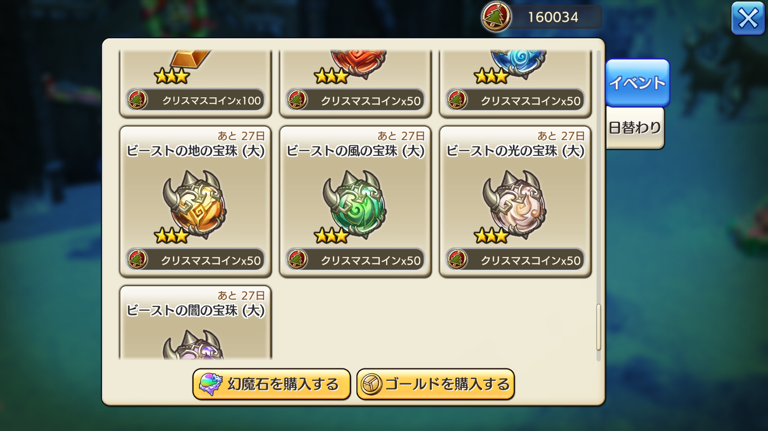 こういうときに下の方にあるビーストの属性宝珠を買い溜めしておくといいです。