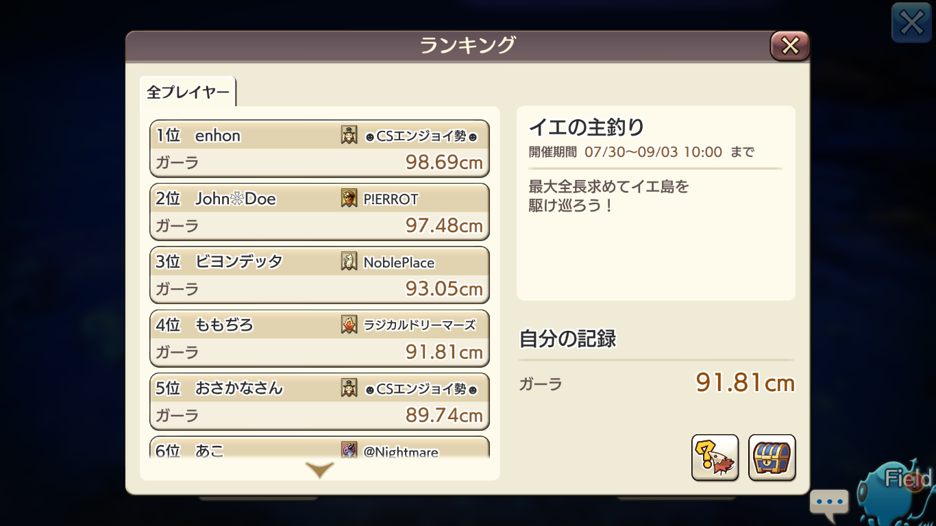 変な称号の「オジサンマスター」手に入れられたので、その後釣りやってないな・・・