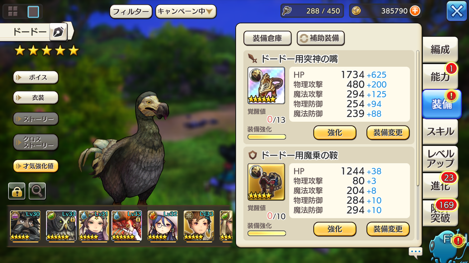 うちのドードーちゃん、やたら装備をいただけたもんで、☆6進化や凸させてあげたいのやまやまだったんですけど、ドードー巡りでイエ島月間ぜんぶ費やすのイヤすぎたので、ドーしたもんかな・・・と、困ってたんです。ナイス運営!!