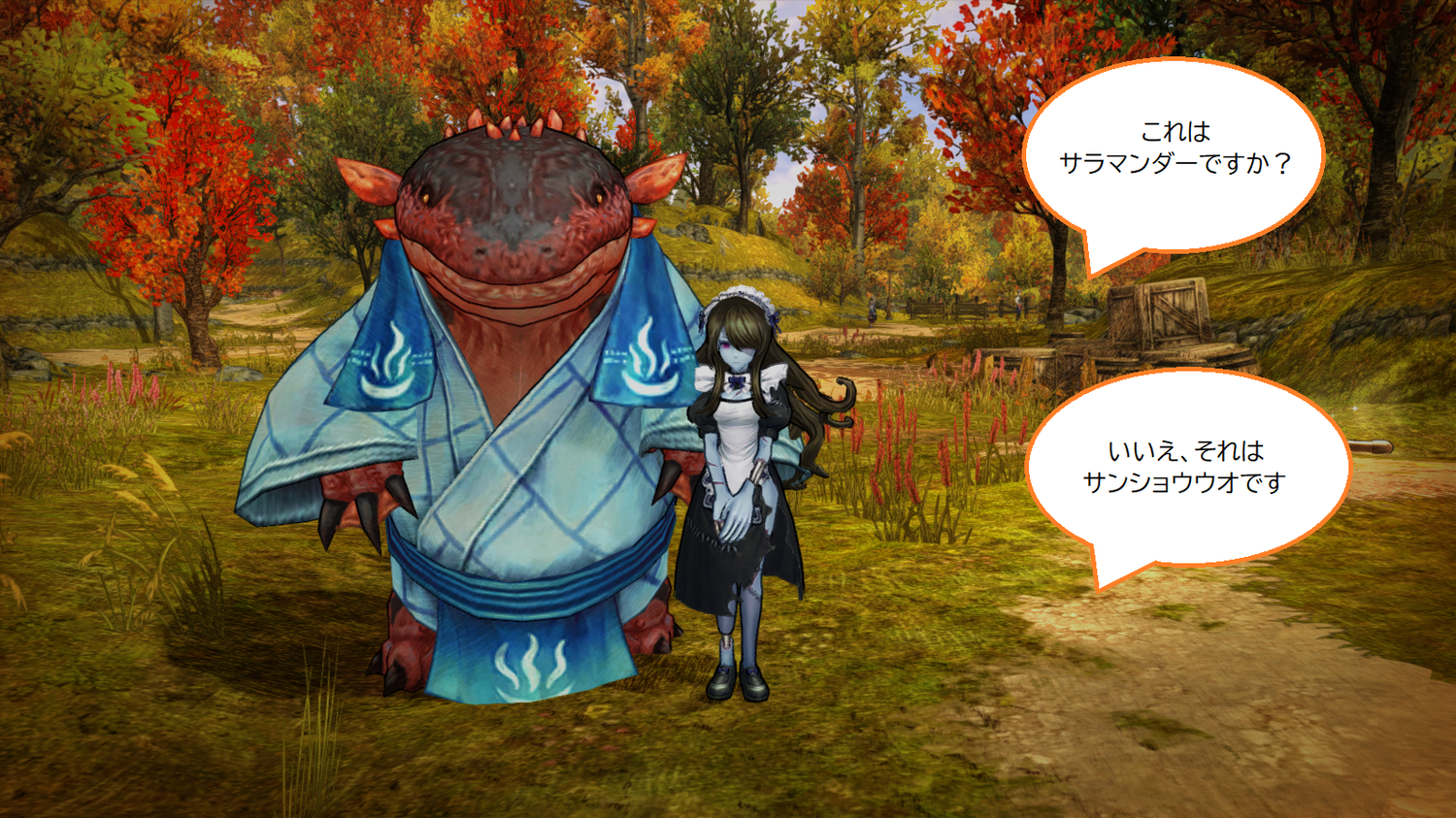 2019/07/07 12:45 公開 さんぽの風景 その8 スクリーンショット ※ダジャレの回ではありませんただひとりごとをつぶやいているだけの回です サラマンダーとサンショウウオを逆に言ってしまうことがよくあります討滅の中ボスのサンショウウオのことをチャットではサラマンダーと言ってしまいます アン リンクをコピーしました 前の旅日誌 旅日誌一覧 次の旅日誌 コメント 1 かにみそたん ID: ijrxgwhdcfv3 メキシコサラマンダーも好きです( *´艸`)☆ミ笑 2019/07/07 12:47 2 アン ID: 6y4sze8466tj >> 1 かにみそたんさん コメントありがとうございますわたしの世代ではCMでウーパールーパーがすごく流行っていました 2019/07/07 12:50 3 セツナ∞◕ᴥ◕∞ ID: 7yayb3k2vpvi ウオさん、浴衣が似合いますね(◍´◡`◍)サンショウウオとサラマンダー、確かに逆のイメージです! 2019/07/07 13:16 4 アン ID: 6y4sze8466tj >> 3 セツナさん コメントありがとうございますこの日誌はちょうどマルマ会にサンドされていてちょっとぜいたくです 2019/07/07 13:23