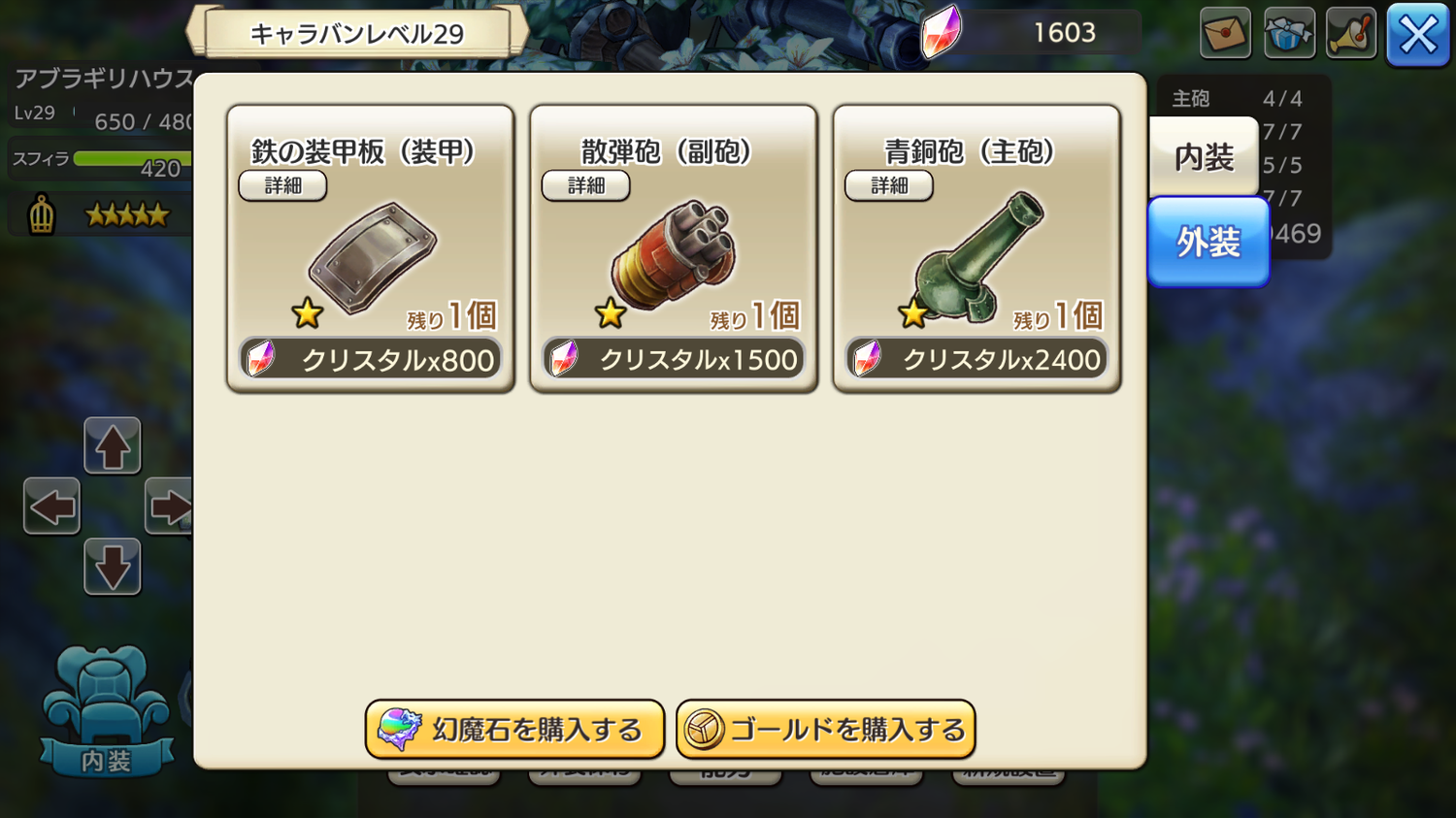 外装画面に「新規設置」なんてボタンがあるのでポチッと押してみたら、なんと外装がクリスタルで購入できるではありませんか!!