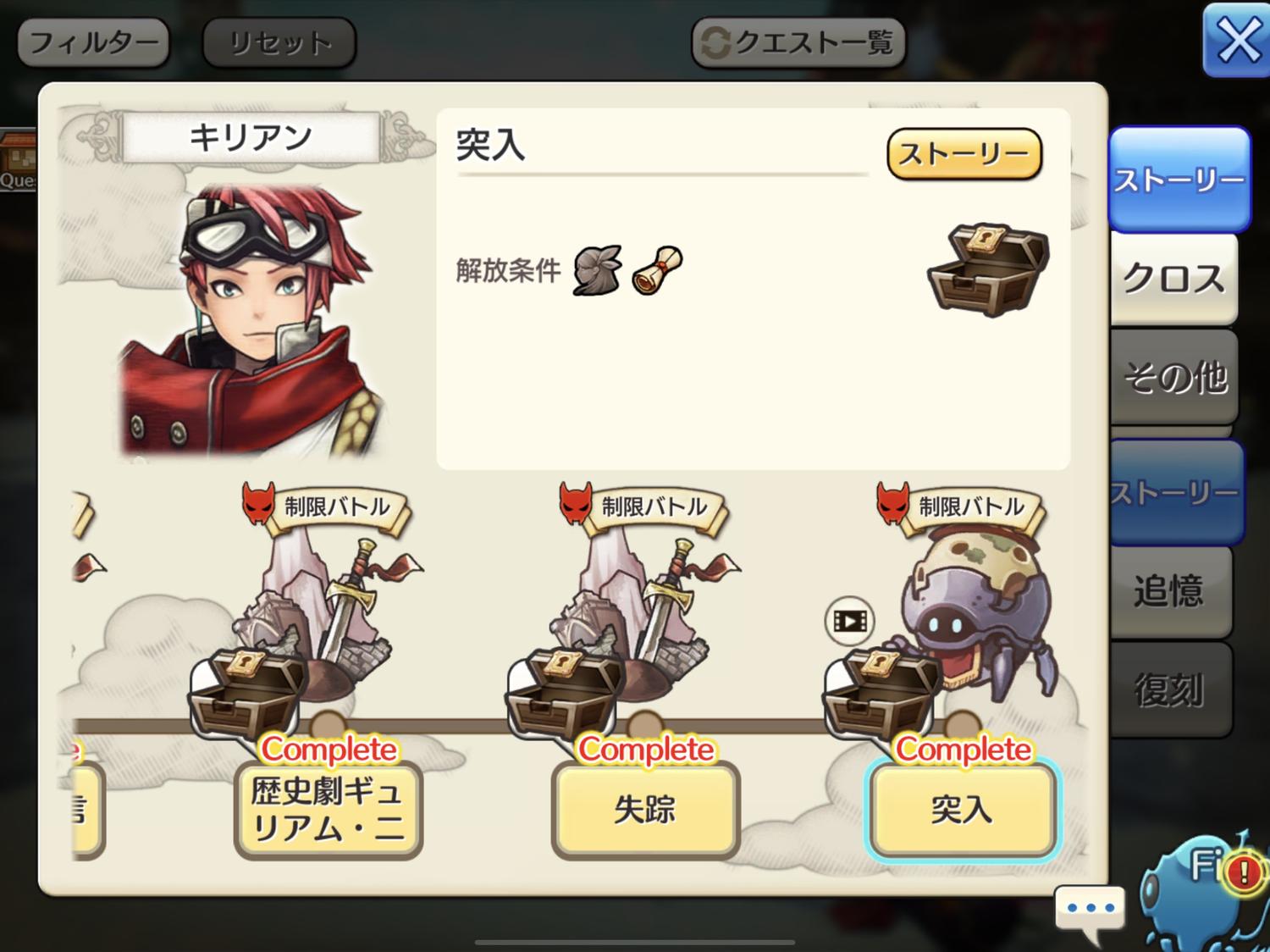 先日、やっとキリアンの『突入』クリアできました!(^^)