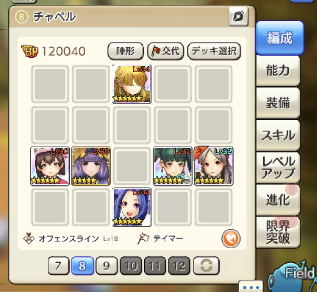 【メイン5、サブ5】 スキルALL4、知力131、ダメ増10%、ダメ減34%