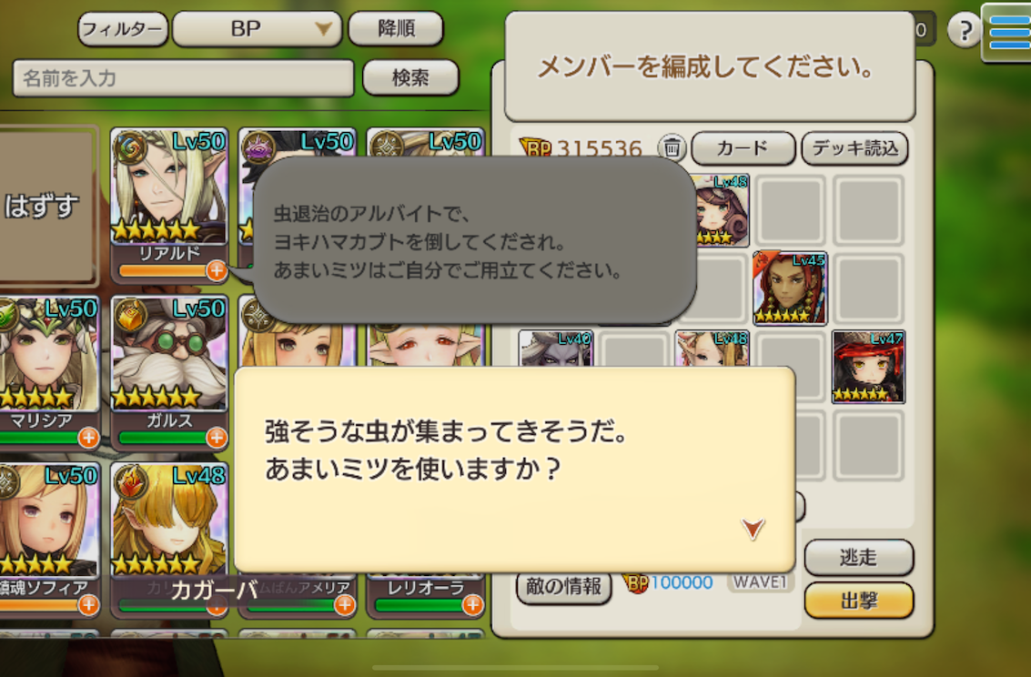 ストーリー全クリアしてないし、いやほらギュリアムに入れなくなるとかあるらしいので一気に片付けられるくらい育成してからと思ってね、そんで無償石つかうとこもあんまりなくて貯まってたしで。お祭りガチャよりは確率高そうじゃん?