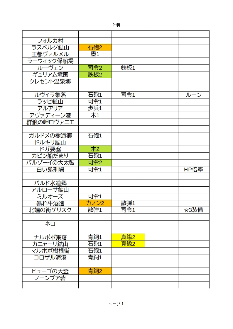 2020/02/27 05:10 公開 きょうの毒砲 雑日誌 2020/2/27木曜日 本日は白い処刑場にHP倍率ルーンⅠ ルーンはルヴイラ集落 スクリーンショットは闇の行商のラインナップです ※表の数字はレアリティです数量ではありません※司令塔は全種類区別なく「司令」と表記※装飾品は表記してありません アン リンクをコピーしました 前の旅日誌 旅日誌一覧 次の旅日誌 コメント