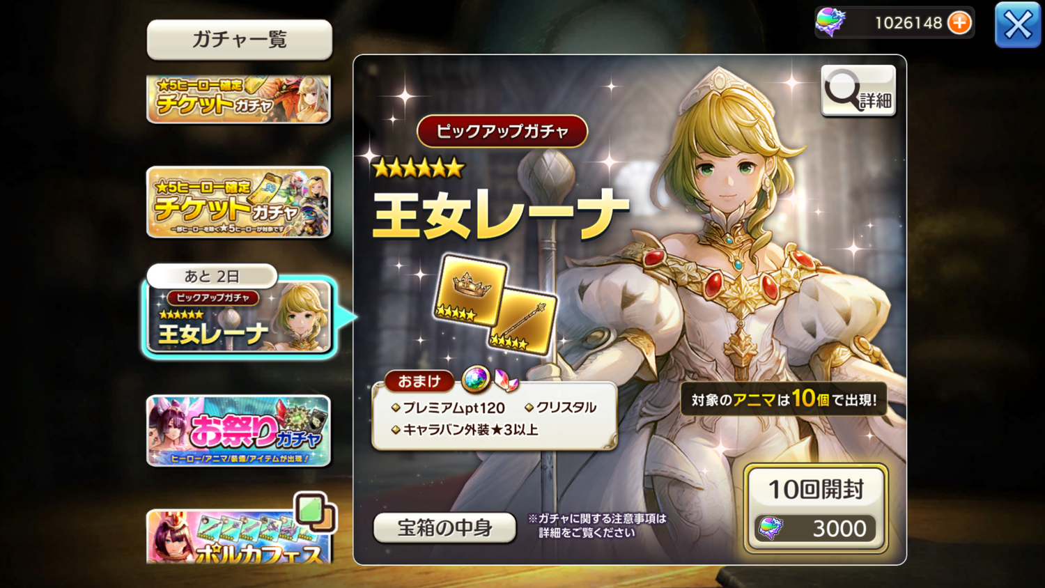 ちなみにお祭りガチャでの王女排出率は0.002パーセントなので、25倍は出やすいということになります。
