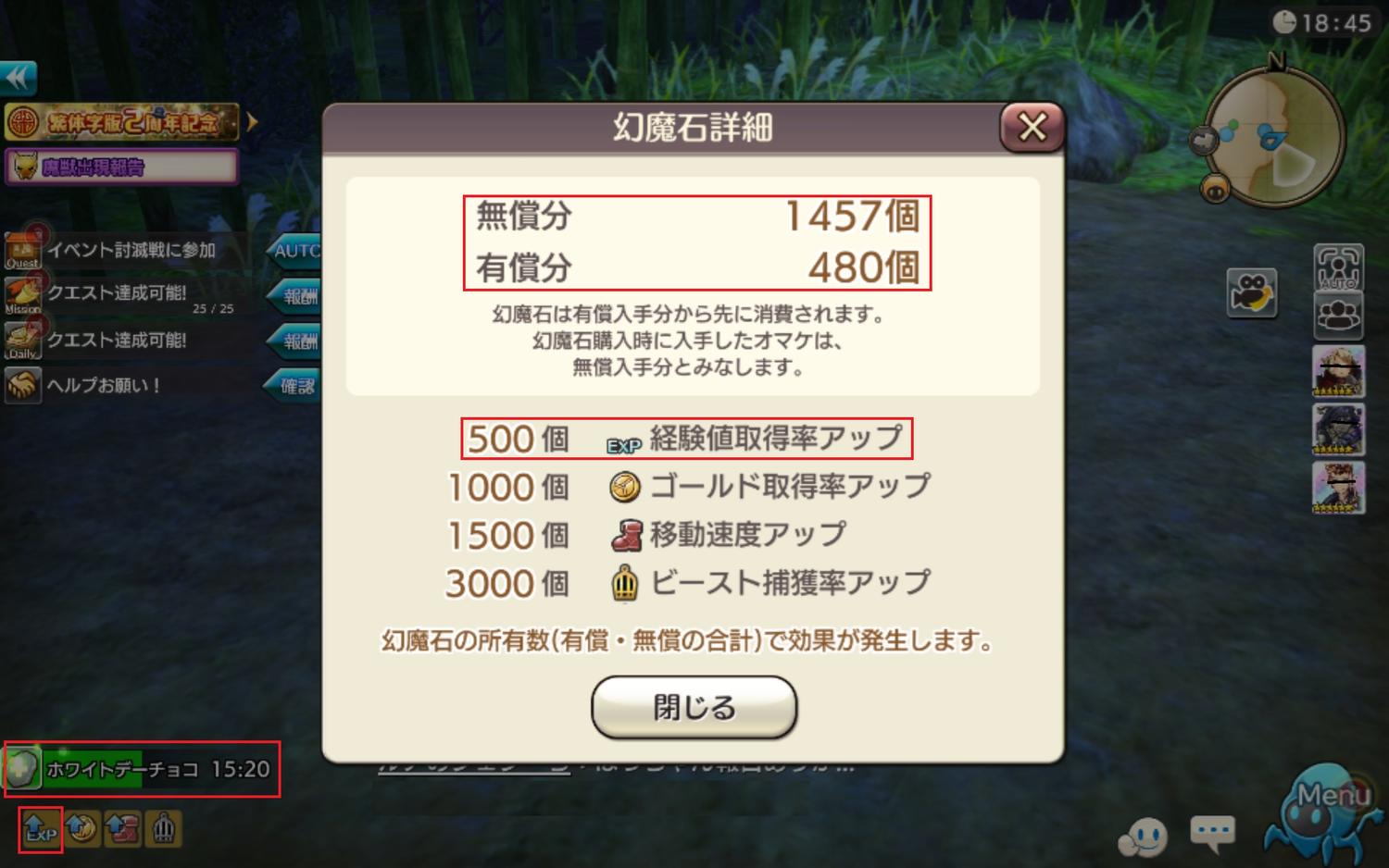 ②幻魔石500以上、ホワイトデ-チョコ確認