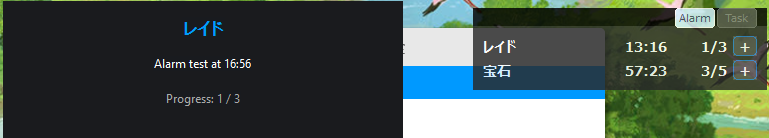 指定した時間や、レイドの指定分前になると、