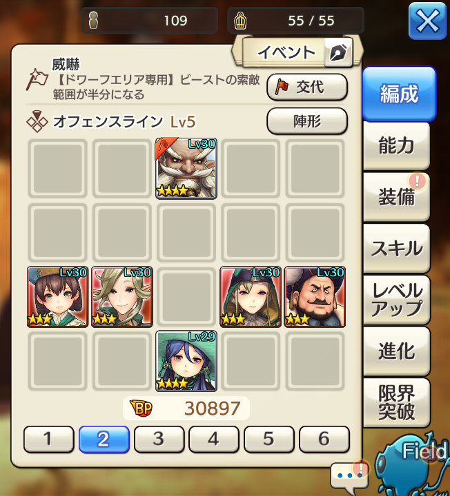 メンバーを試行錯誤したりしてクリアした時の編成は以下の通り。