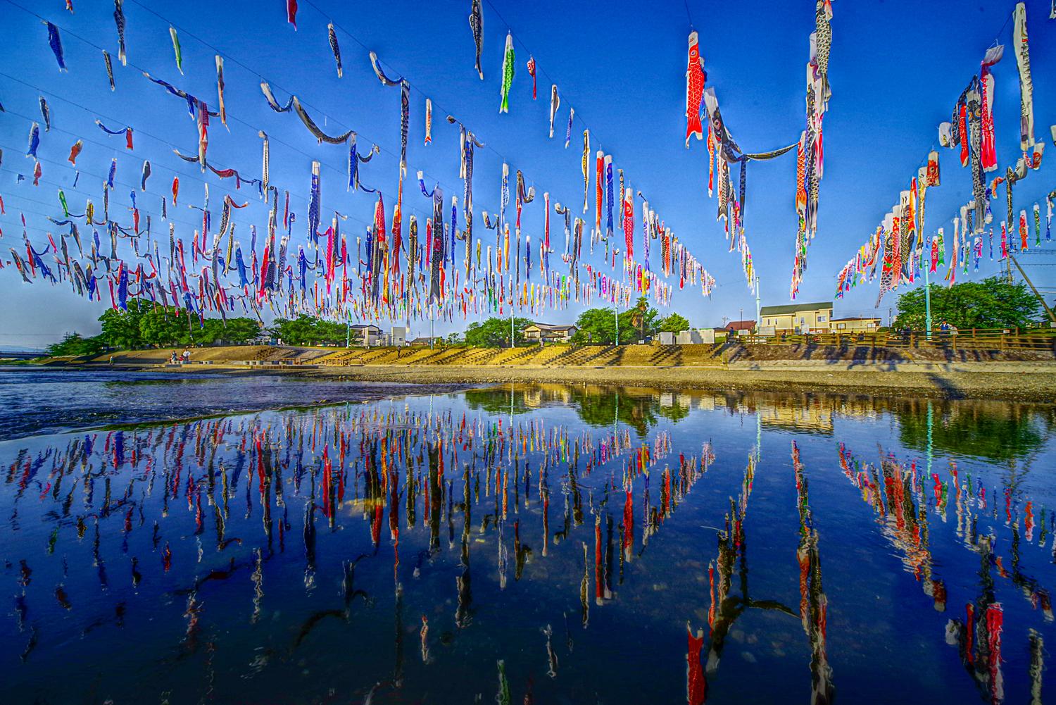 ちょうど季節が重なるので鯉のぼりが約千匹ズラリと並んでいます