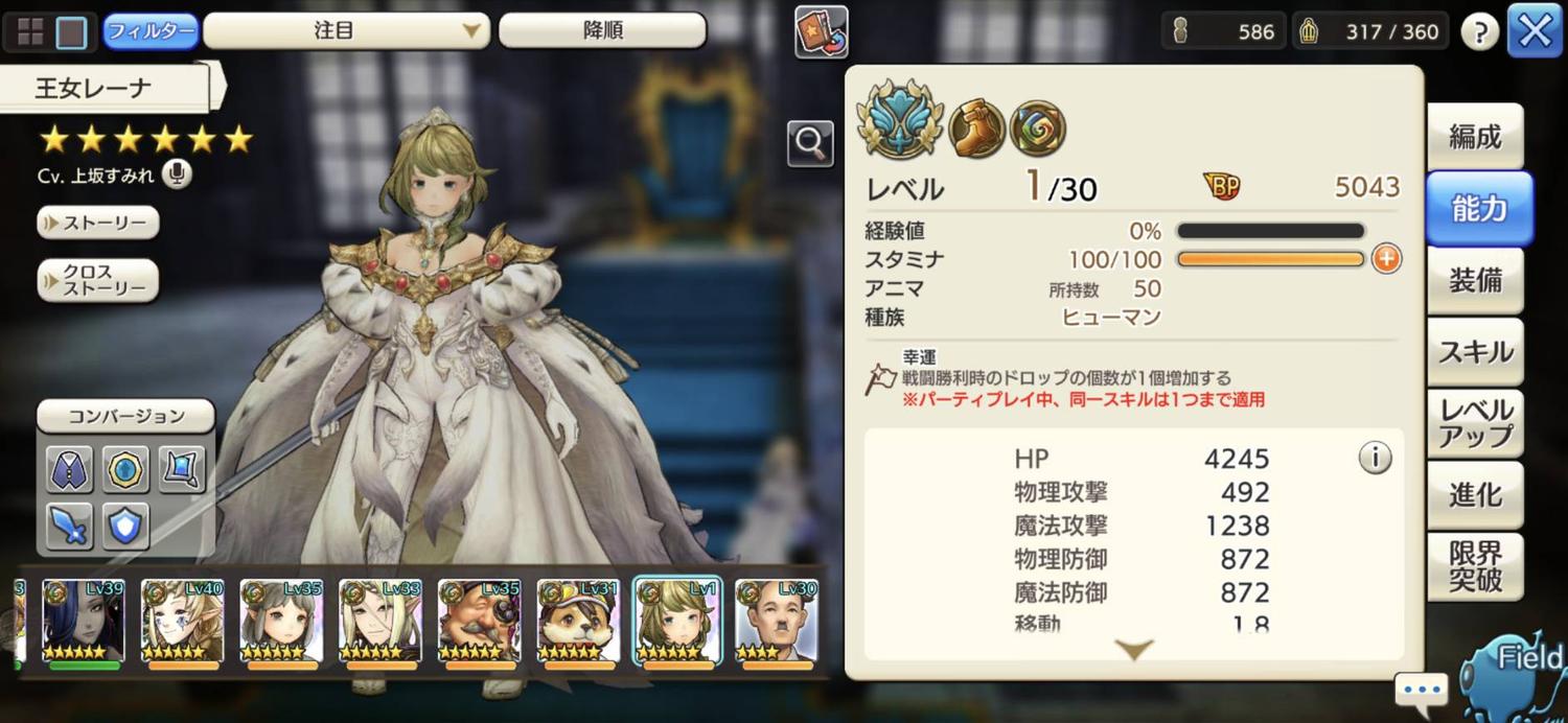 NS5/AS3(魔晶Lv3)/魔防上昇5/スタン耐性6/HPパッシブ5/知力上昇5
