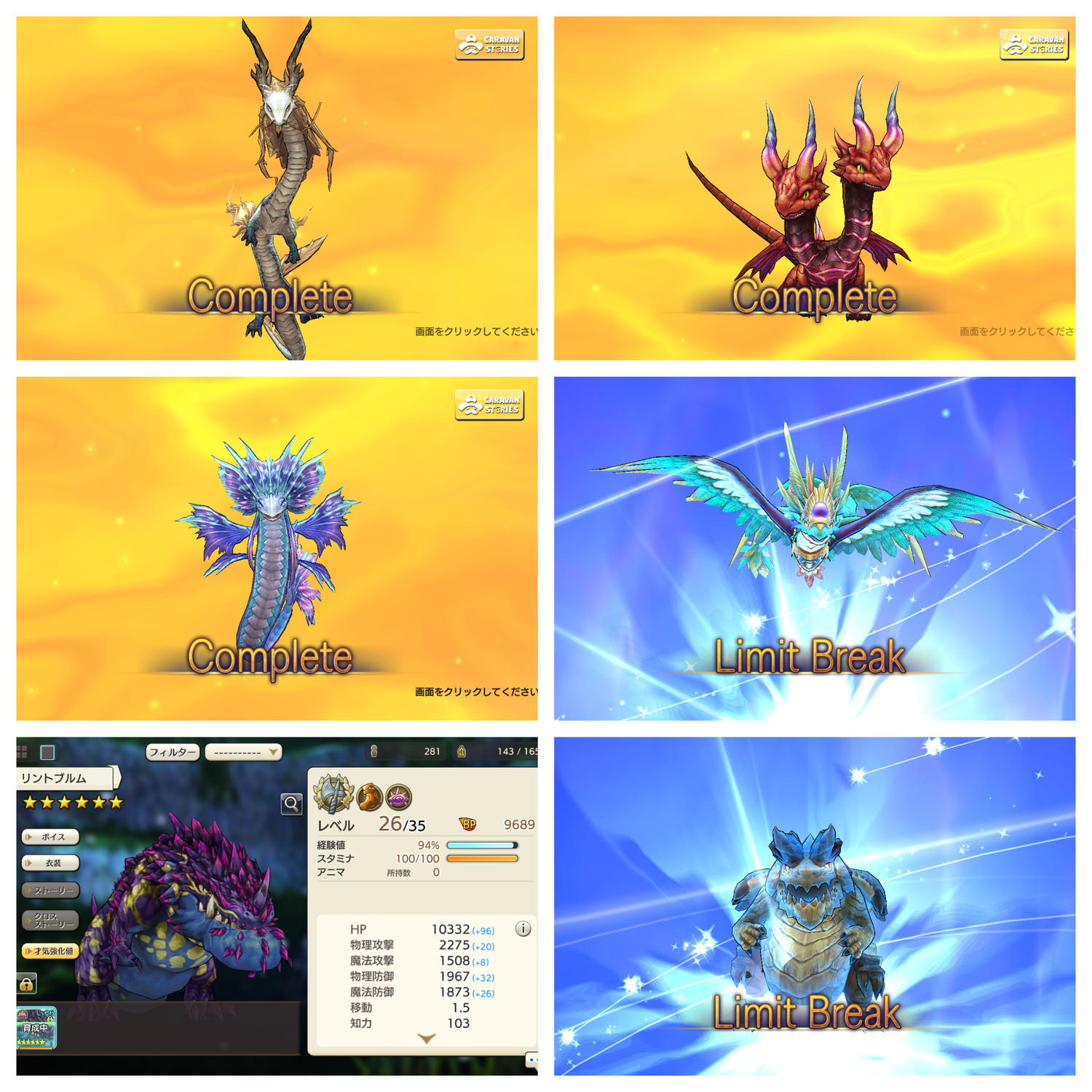 加えてリントブルムLv35・ケツァルコアトル・ズメイLv36まで限凸完了!