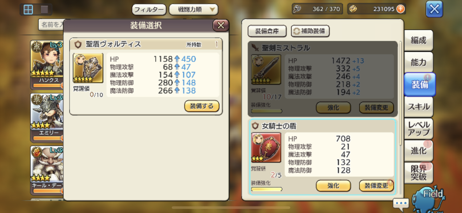 ☆5進化させるにもアニマを貯めるには時間が掛かるので、てっとり早く出来る事といったら装備の強化しかないので、まずはそこに着手。