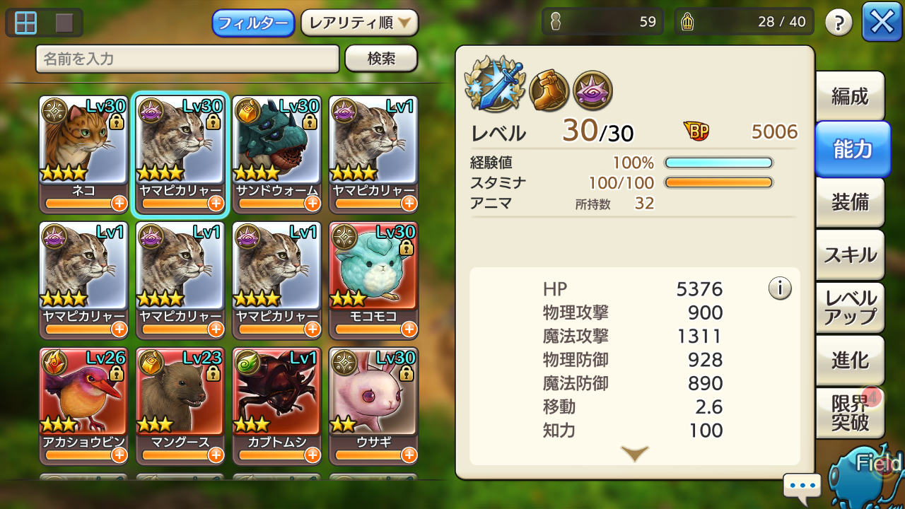 まだ、里帰りの扉も Lv3 なので☆4ビーストは帰せないし。