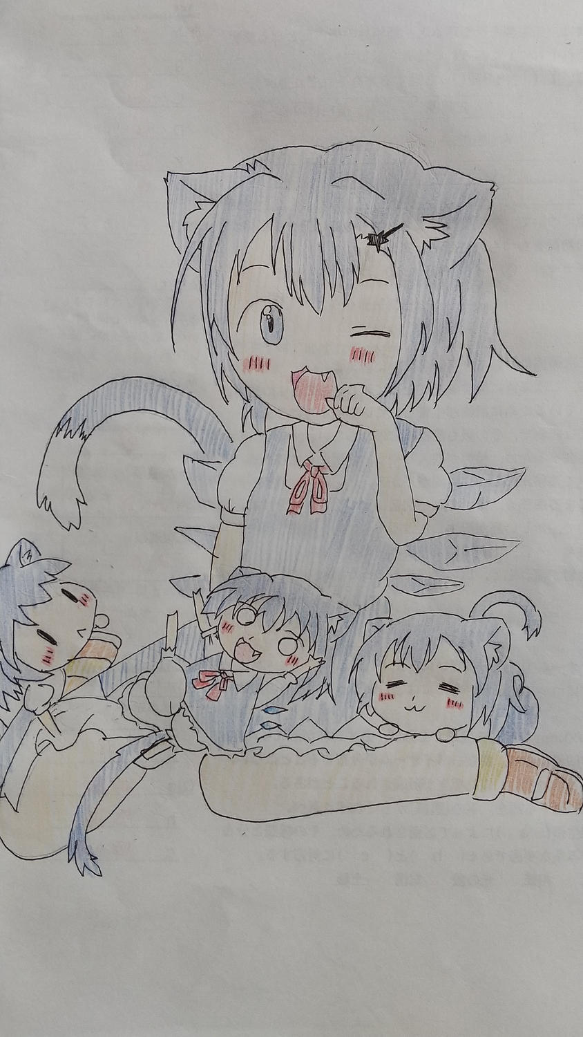 一枚目は、4年前描いた猫耳チルノです!!