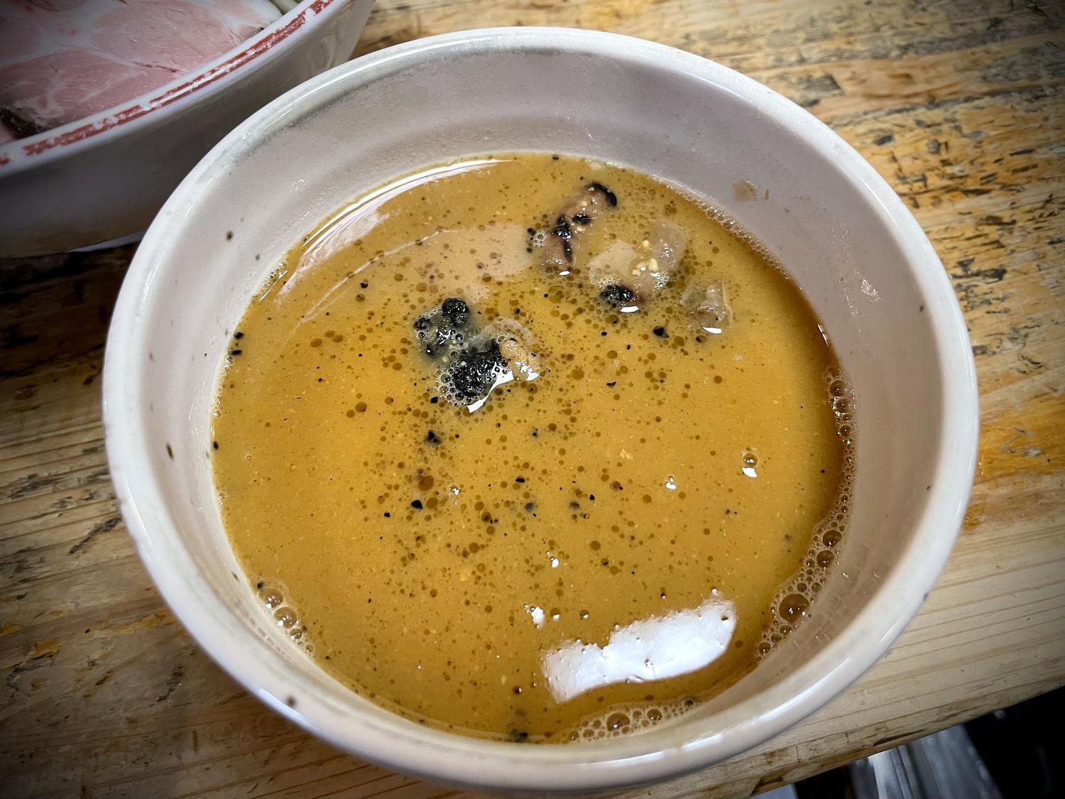 焼津市の魚介出汁に駿河軍鶏の白湯、そこに国産ホルモンを炭火焼きを…