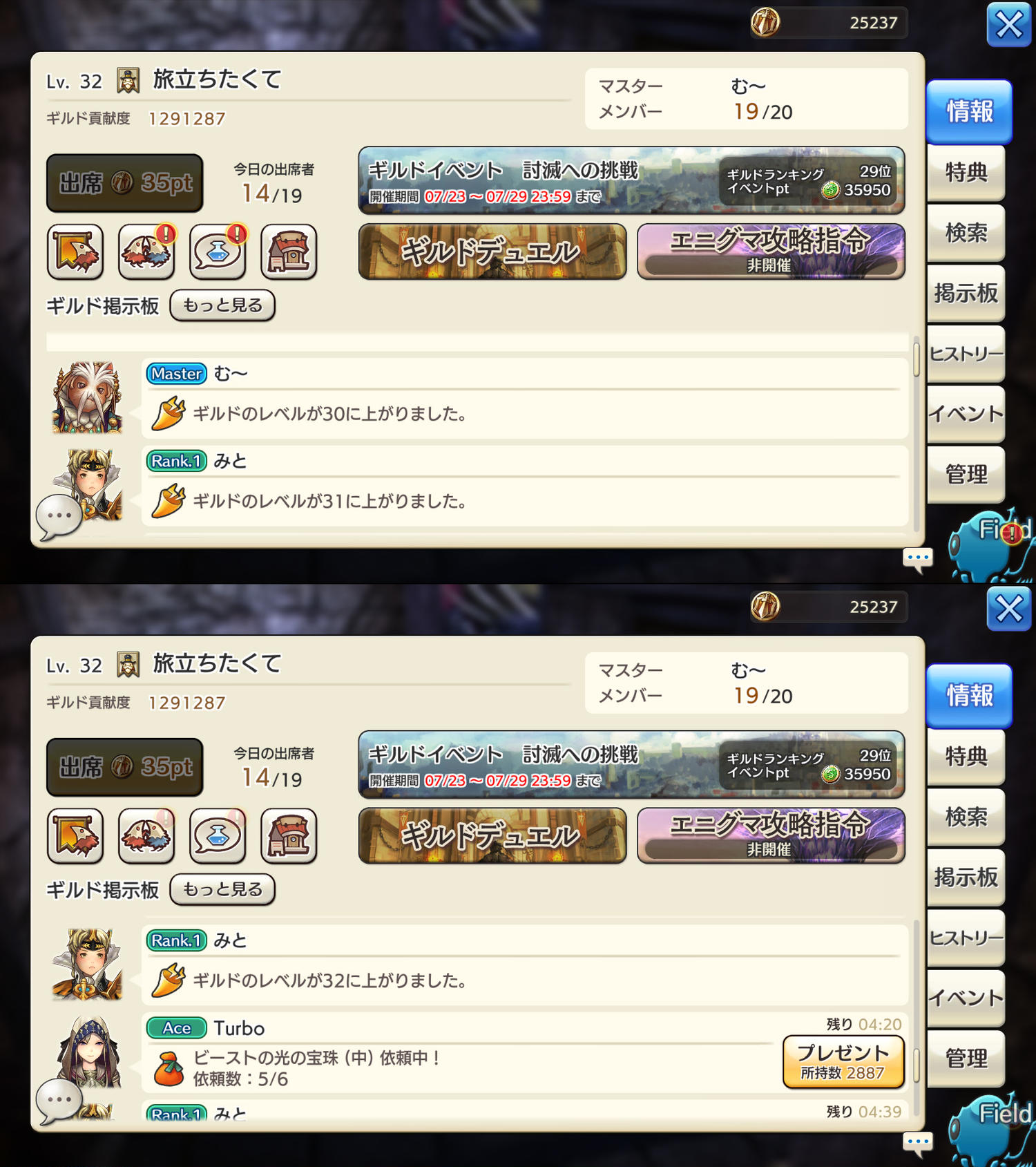 今後もギルドレベル、モリモリ上げていきましょう~↑