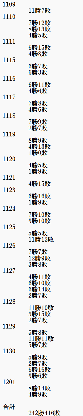負けまくって悔しいのでいつかネタにしようとして4シーズンくらいまえから勝敗記録付けてます( ´艸`)