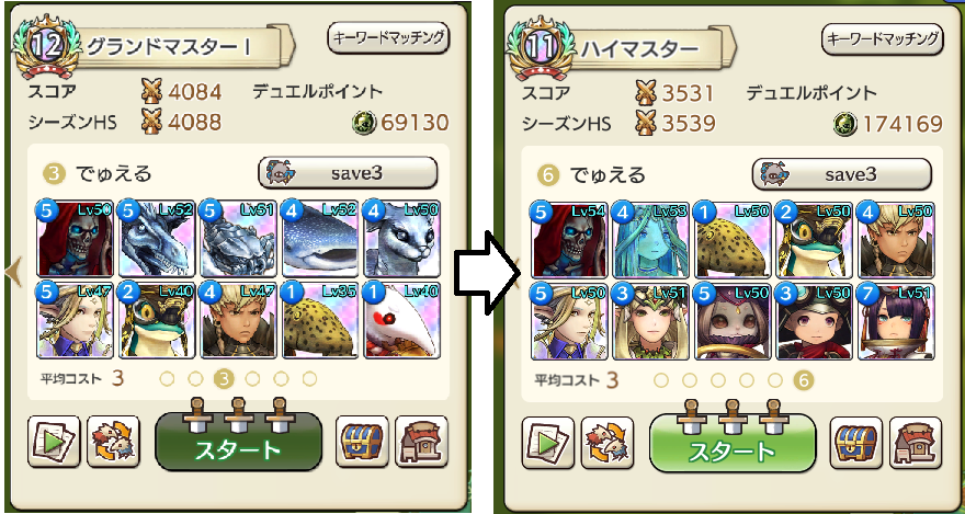 ヒュマアバはLv4,5無いとデュエルでは厳しい印象がありドワフ、ミサクラ、ゲッシーを優先しちゃいました>< がんばってヒュマアバ魔晶レベル上げます!!