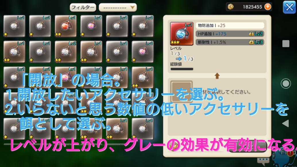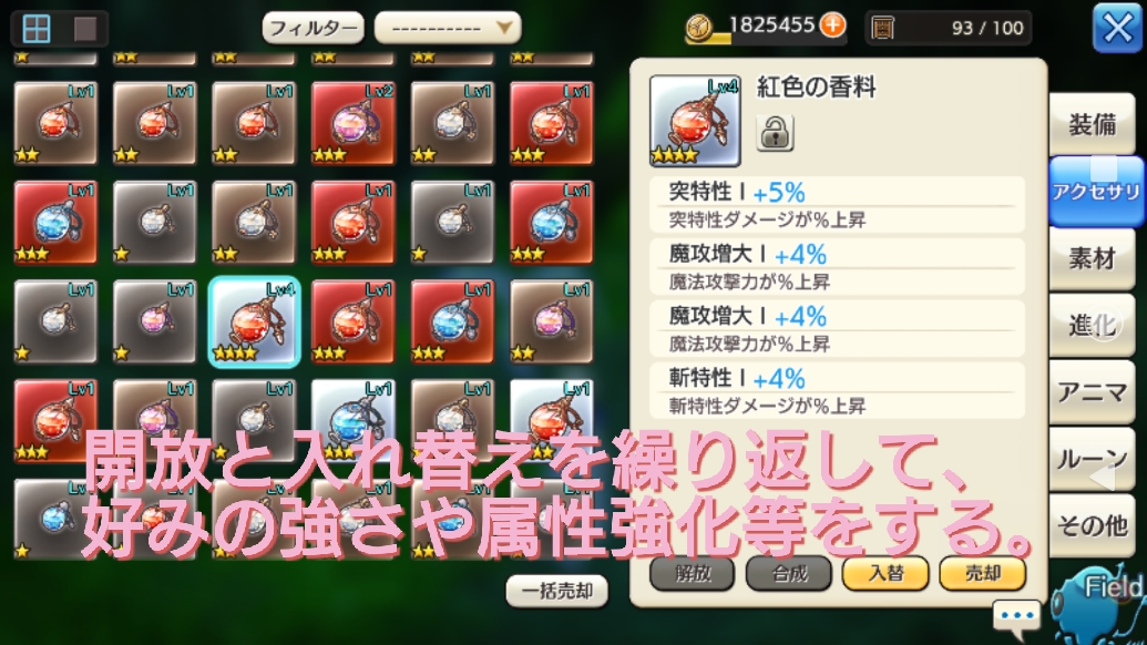 たくさん香料を集めて、効果の高いものをレベルの高い香料に開放、入れ替えをすると素敵!!!なあなただけのアクセサリーが!!!