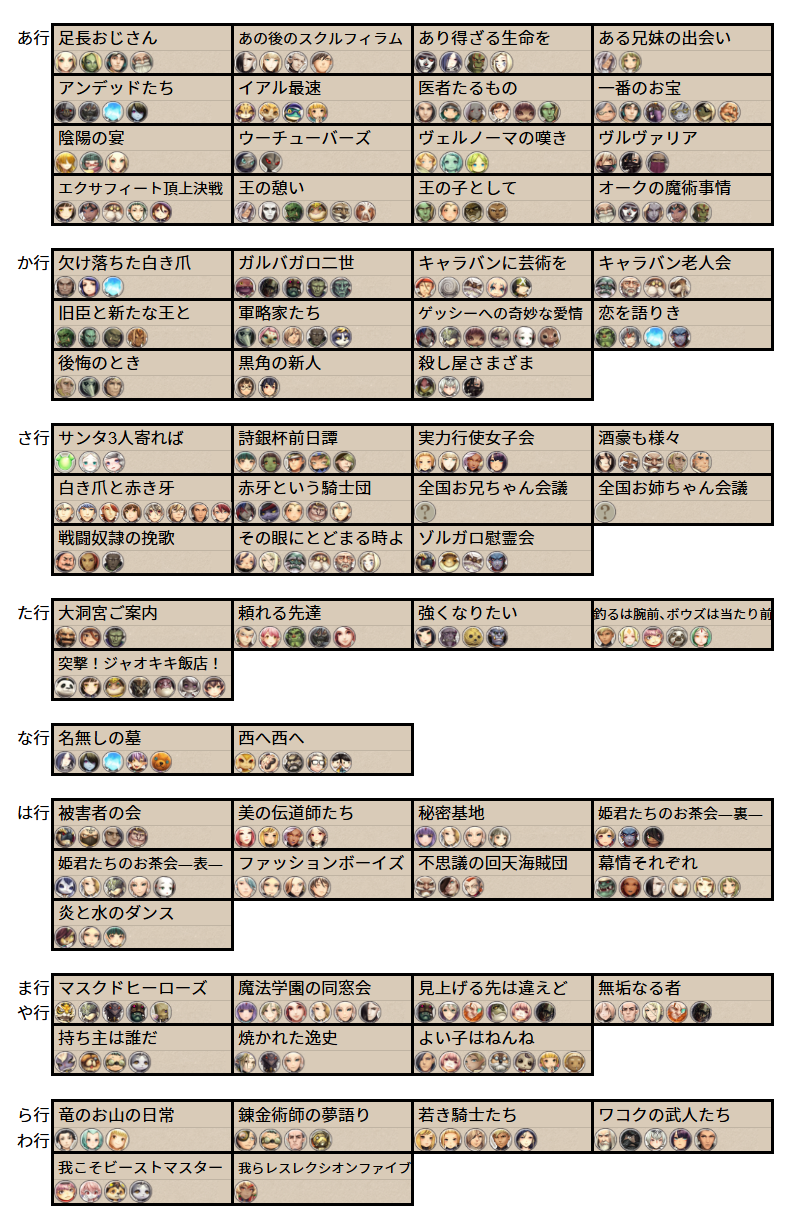 公式ヘルプが演目名だけだったので、イベント時に作った上映時間表をいじって登場キャラ(※ヒーローのみ)の表にしました。