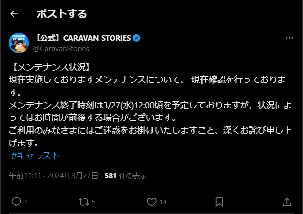 2024/03/27 11:21 公開 終了予定12:00だそうです(*'ω'*) 雑日誌 スクリーンショット いちおうMSとX両方に掲載されてます(*'ω'*) luna リンクをコピーしました 前の旅日誌 旅日誌一覧 次の旅日誌 コメント