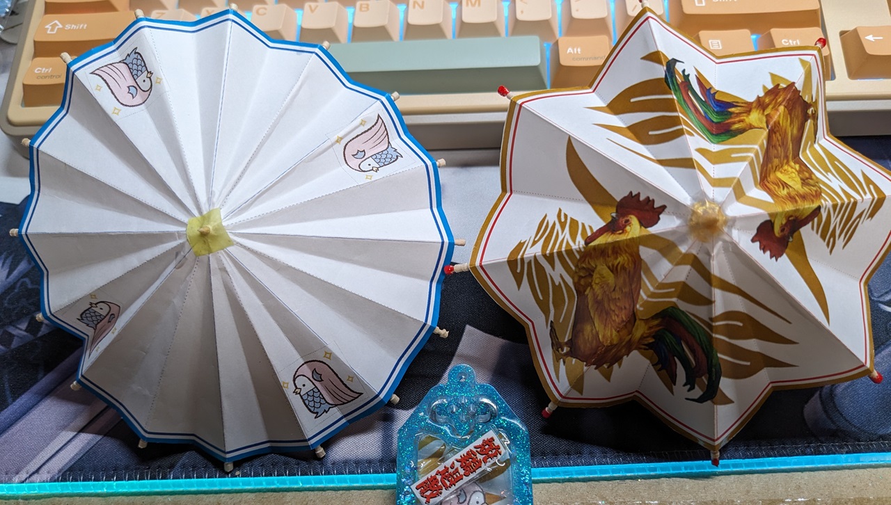 赤か青色の二重叶結びとか、背面とか・・・キーホルダー等装飾追加へ。