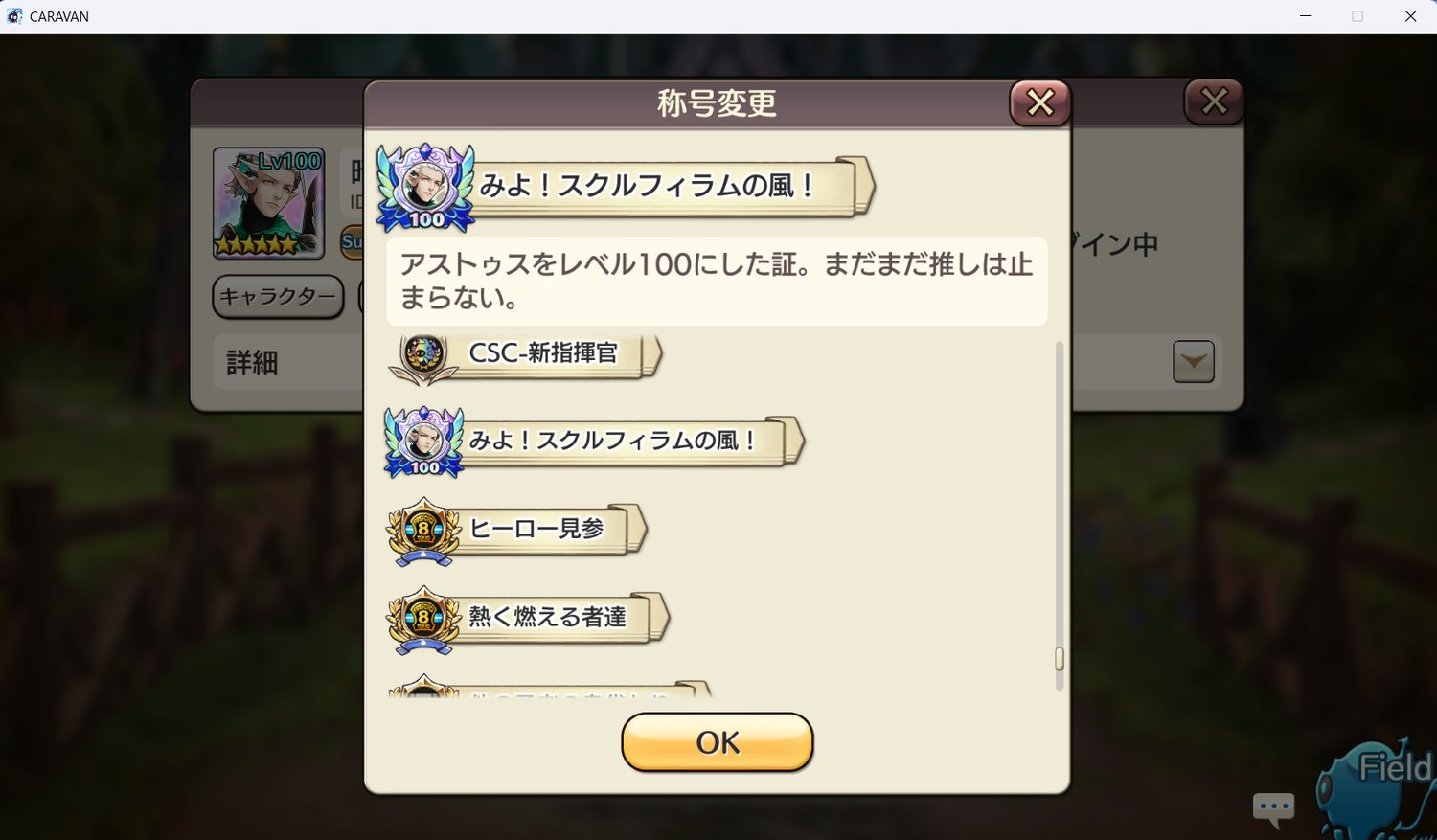 2026/01/30 06:39 公開 みよ!スクルフィラムの風!✨ 雑日誌 アストゥスがレベル100になりました🎉🎉🎉顔イラストの付いた称号が嬉しくもあり、成長しきってしまった寂しさもあり…でも、まだまだ推しは止まらない♪( 'ω' و(و" 晴 リンクをコピーしました 前の旅日誌 旅日誌一覧 次の旅日誌 コメント