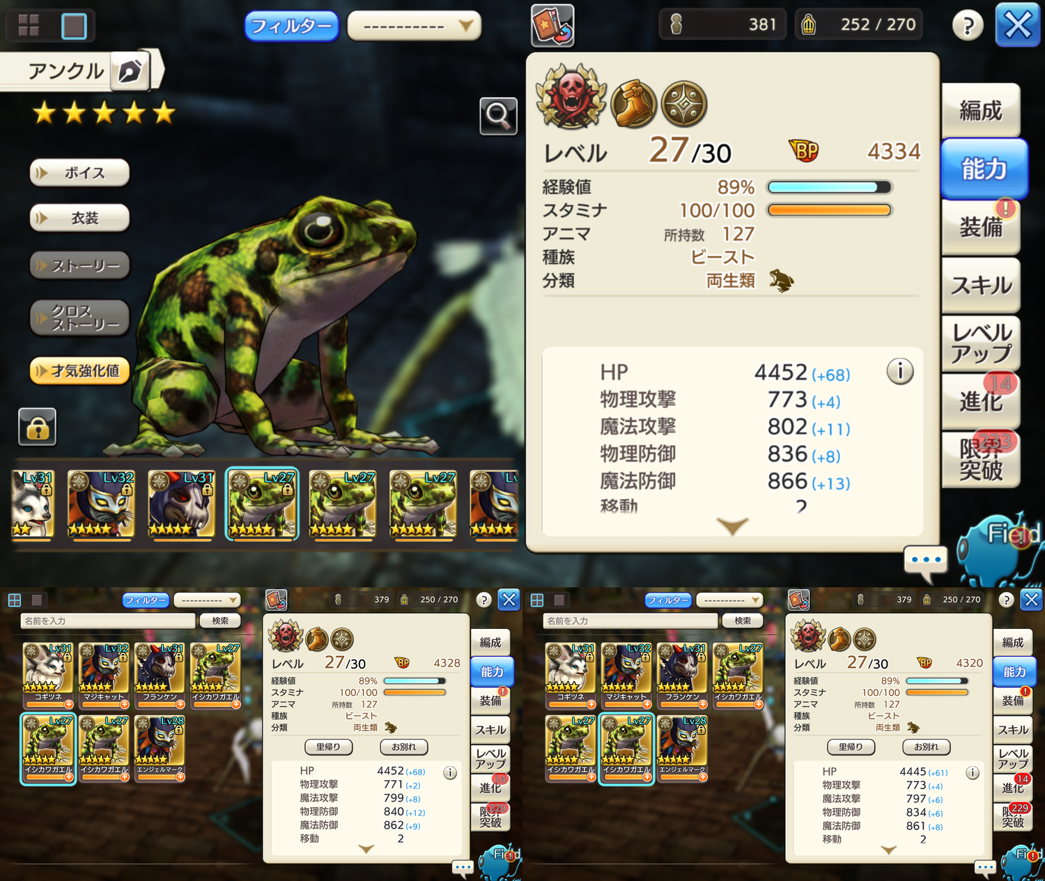 冒頭にも書きましたが今回の選別時点ではこれ以上の育成は無理ですのでアニマタップで今後の準備をしておくぐらいしか出来ることはなさそうです。