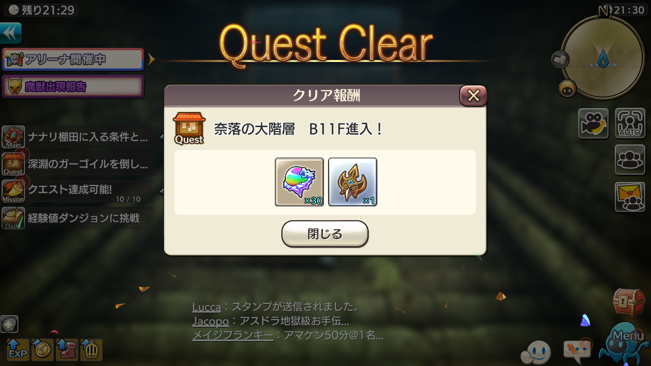2021/06/17 15:09 公開 祝100日目!! 雑日誌 初心者 キャラバン 今年の3月10日から100日目(⌒∇⌒)いつまで続くかなと思いながら、現在進行形で続いています。日課が無ければいいのに…などとつぶやきながら…今日も…奈落はBF11階で、ボス倒してコイン3枚貰えて嬉しい!奈落が始まった時、ショップ見て105枚を目標にと、…妄想…BF9階は1日躊躇しましたが、さっきまで11階で乱入繰り返していました妄想が現実になり、一人で喜びました(^▽^)/ 皐月 リンクをコピーしました 前の旅日誌 旅日誌一覧 次の旅日誌 コメント この発言は削除されました(2022/02/02 02:00) 1 この発言は削除されました(2022/02/02 02:00) 2 3 皐月 ID: 7unewrnd5xkg >> 1 時間が合えば良いんだけど、わたしは13時から16時位が奈落タオムかな12階がカニでアイムは通過したけど、こちらはどうなるか?11階はガーゴイルなんだけど、2種類いて勝てないのも居るんで乱入がお勧めコインも3枚になるし美味しい(^▽^)/入場は3回だけどスフィラで時間延ばせばいいのでは?、わたしは最大で50分レイスも無理にソロでなくていいのでは?通過条件は乱入でもOKだし、時間が短い方が稼げるので乱入を嫌がる方は無いかと稼いで書と覚醒ルーン確保なのです!! 2021/06/17 22:37 4 皐月 ID: 7unewrnd5xkg >> 2 (人''▽`)ありがとう☆一番必要なのはデュエルとコロシアムなんだけど、22日メンテまでは奈落優先!上に書いた書、覚醒ルーンの他に大香料、金塊、クリスタルが狙い目でお勧め 2021/06/17 22:45
