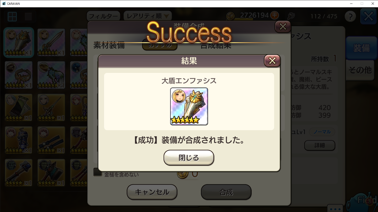 2021/05/21 06:46 公開 2年ぶりのカムバック12日目(ソフィア☆6武器装着) 念願のソフィアを☆6にできたので、無敵のタンクにすべく、メイン武器、サブ武器ともに作成、装着した。修練は23でやめた。これで難関クエスト攻略ができる。 いぐ リンクをコピーしました 前の旅日誌 旅日誌一覧 次の旅日誌 コメント
